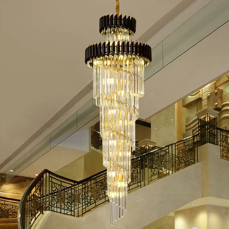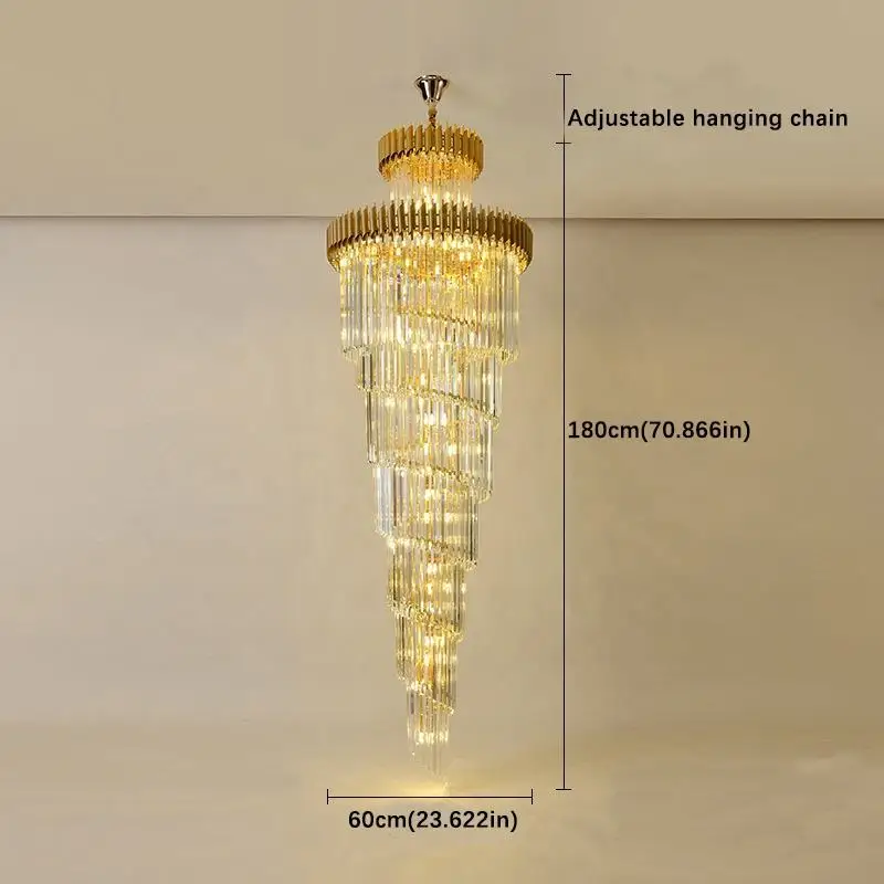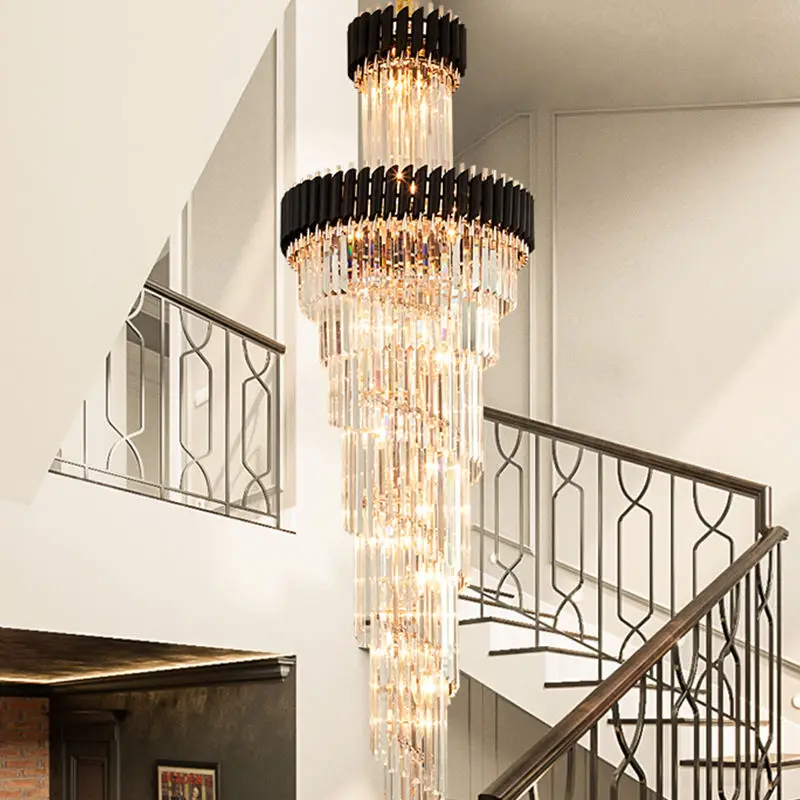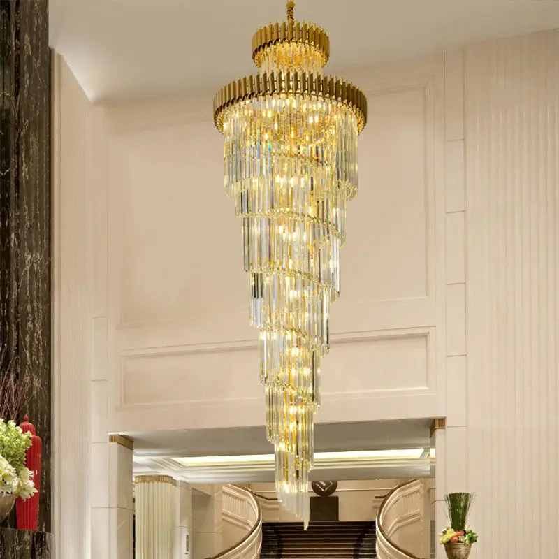 High Ceiling Gold Crystal Lustre Lamps Modern Spiral Curvature Led Chandeliers for Hotel Home Staircase