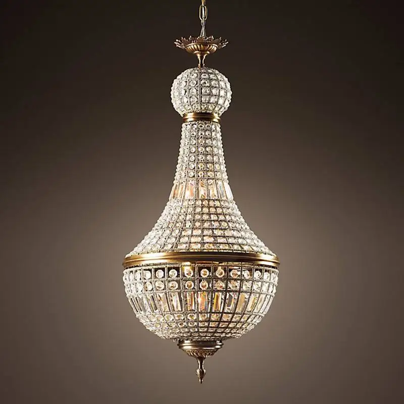 French Classical Retro Luxury Bronze Finishing European Style Decorative Led Crystal Beads Chandelier