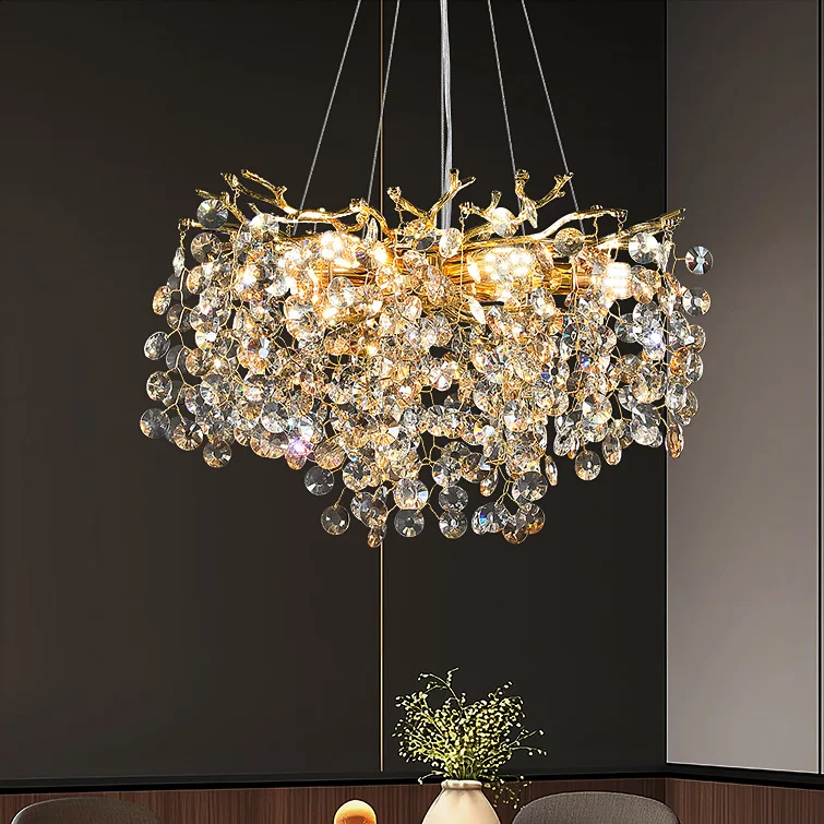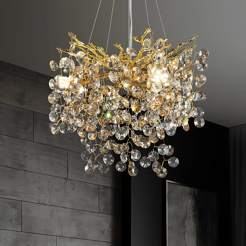 Decorative Lighting Gold Tree Branch Crystal Beads Chandelier for Living Room or Hotel Luxury Ceiling