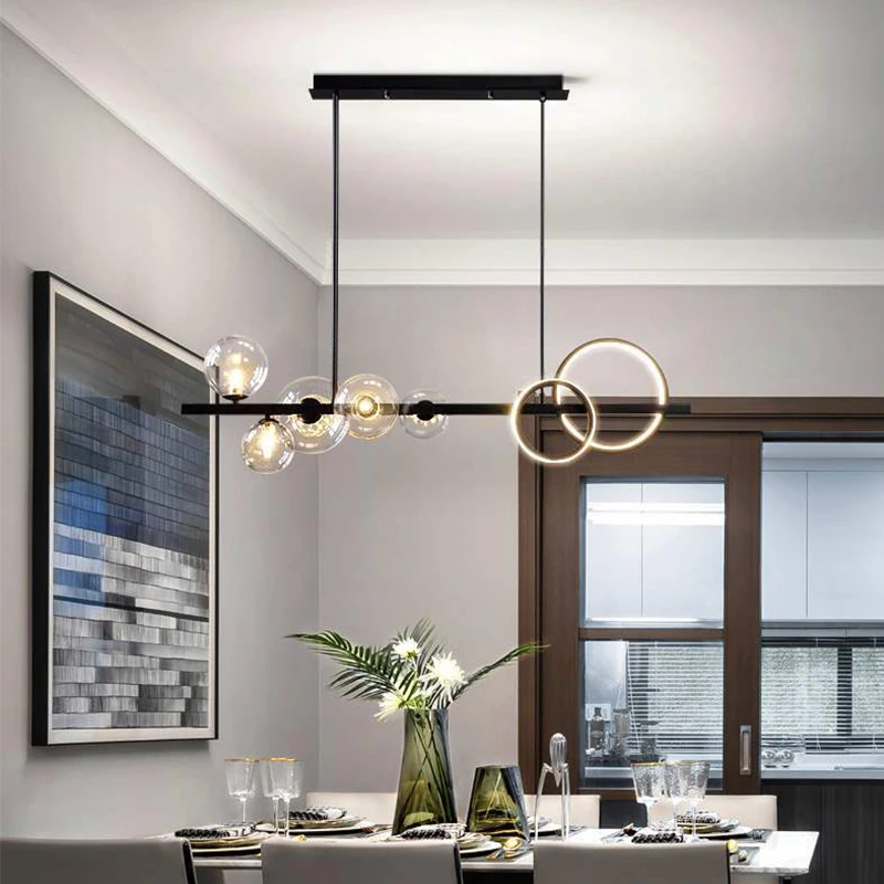 Nordic Designer Line Chandelier Dining Room Acrylic Glass Bubble Hanging Long Strip Pendant Lights