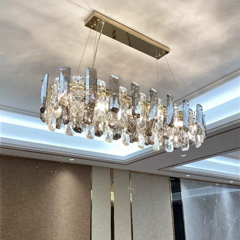 Nordic New Design Decoration Lighting Luxury Led Living Room Grey Crystal Circle Chandelier
