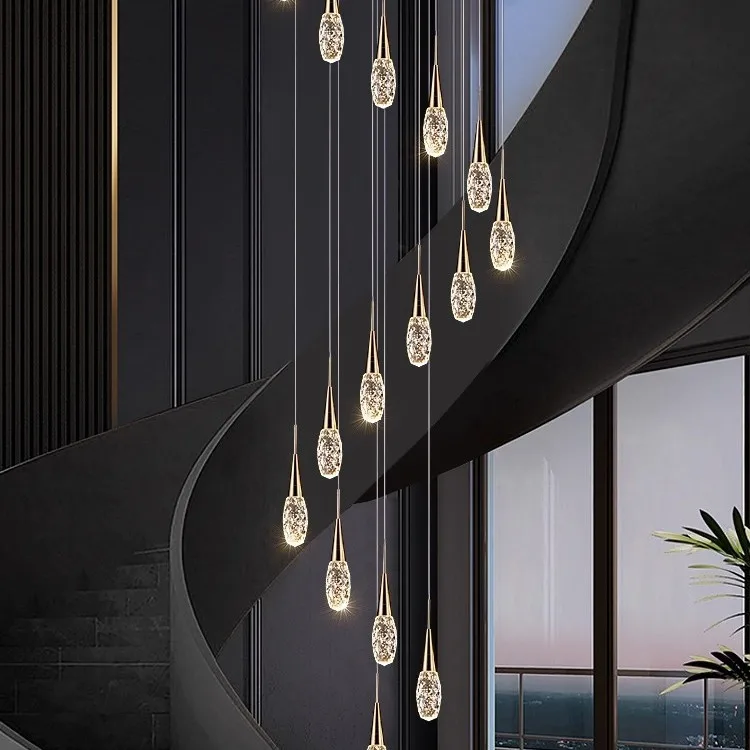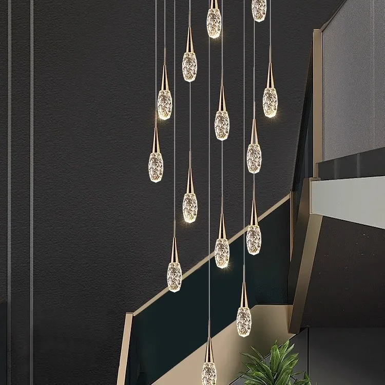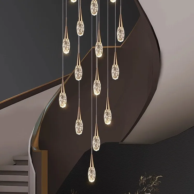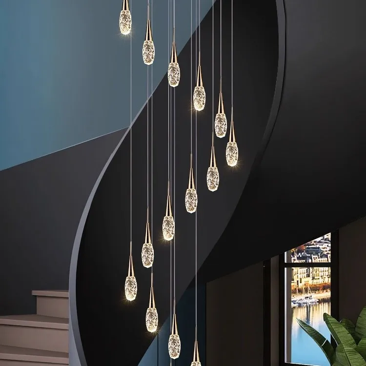 Zeal Lighting Long Stairwell Hanging Pendant Light Staircase Villa Duplex Stair High Ceiling Crystal Chandelier