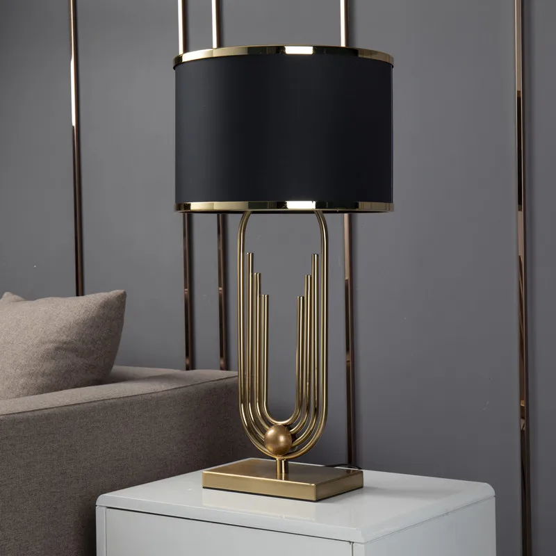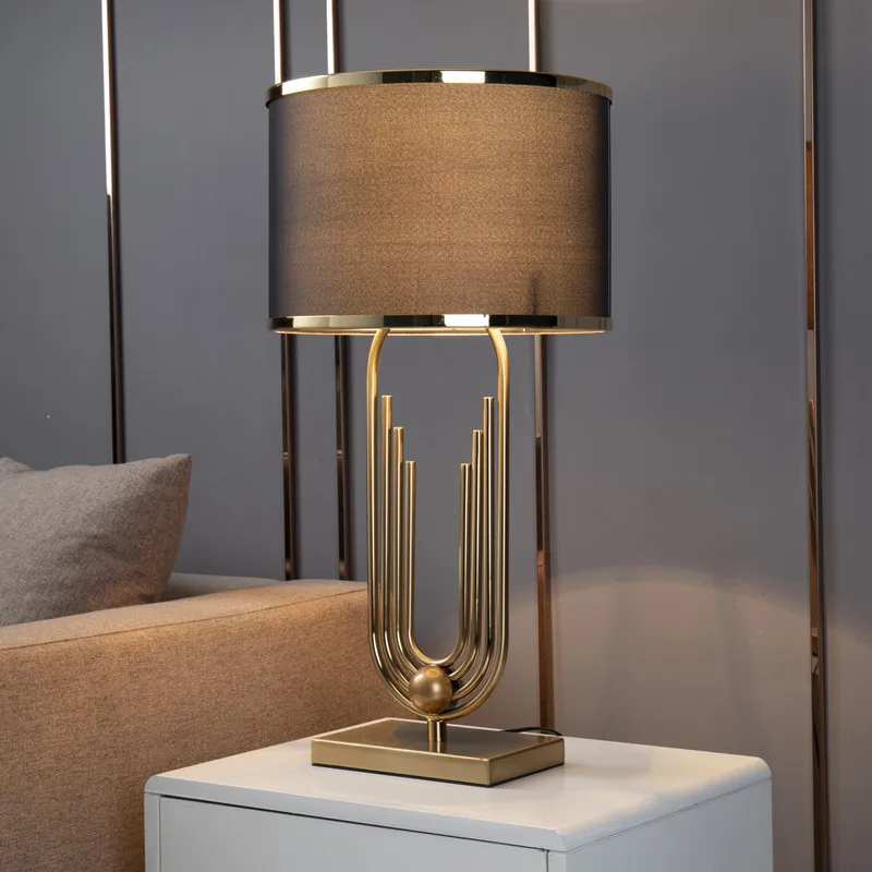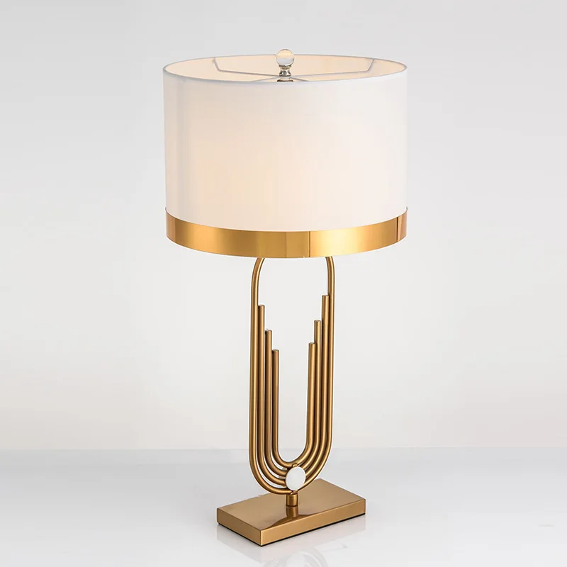 Zeal Lighting American Retro Hotel Bedside Bedroom Living Room Nordic Fabric Shade Led Metal Table Lamp
