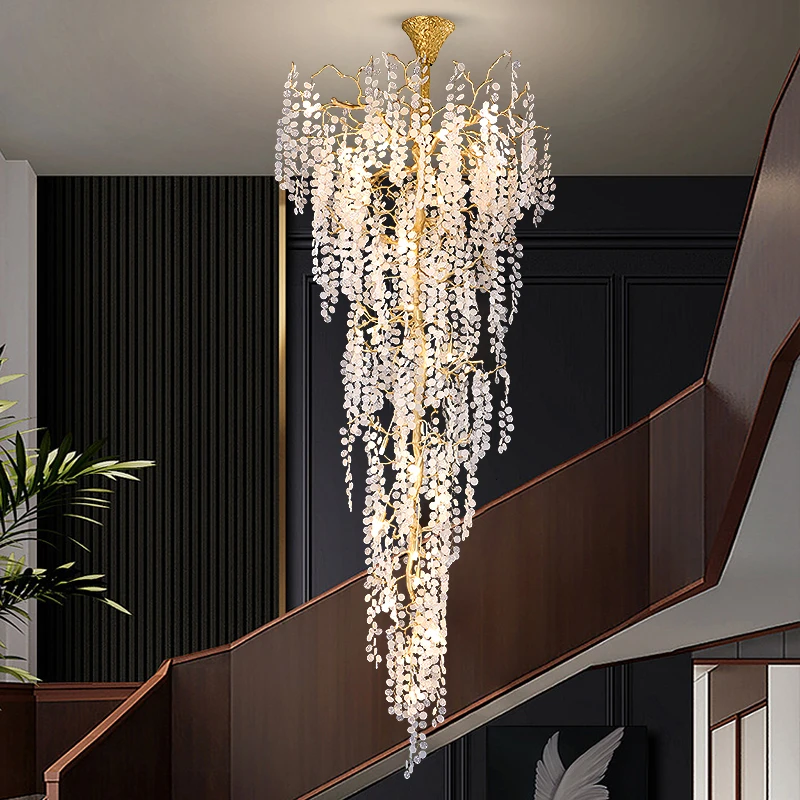 Zeal Lighting Long Stairwell Hanging Pendant Light Staircase Villa Duplex Stair High Ceiling Crystal Chandelier
