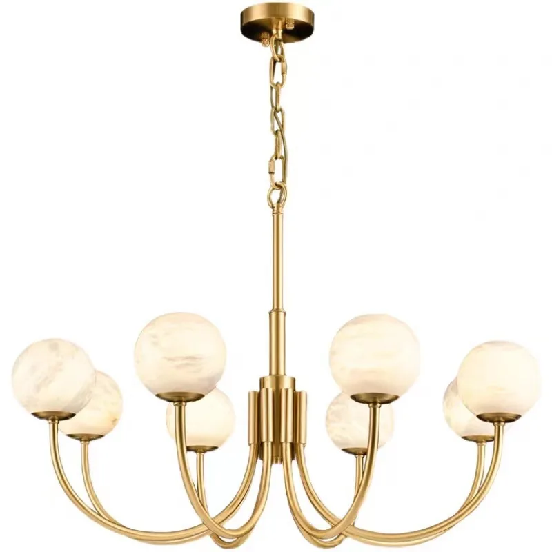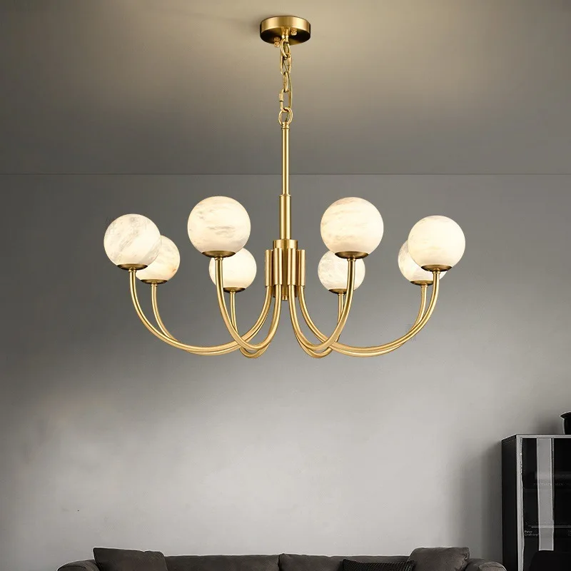 Zeallighting Modern Natural Alabaster Globe Sphere Light Luxurious Brass Decorative Marble Balls Chandelier for Living Room