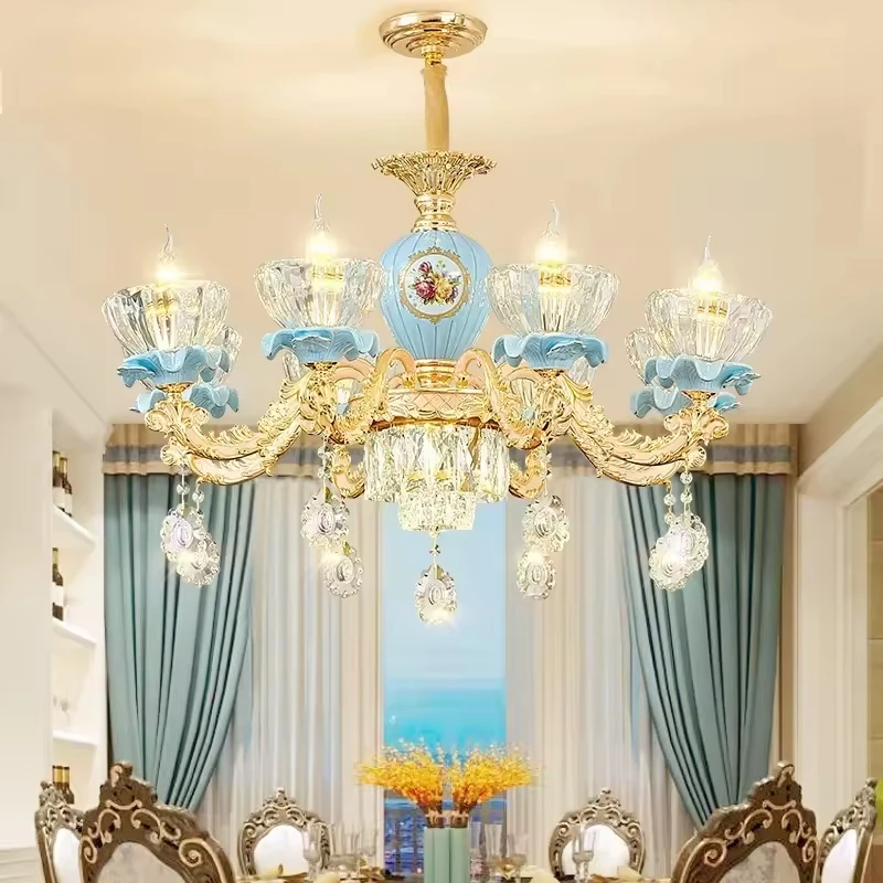 European Design Reasonable Price French Vintage Blue Ceramic Crystal Chandelier Living Room Bedroom Hotel