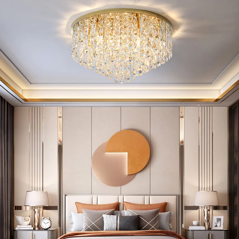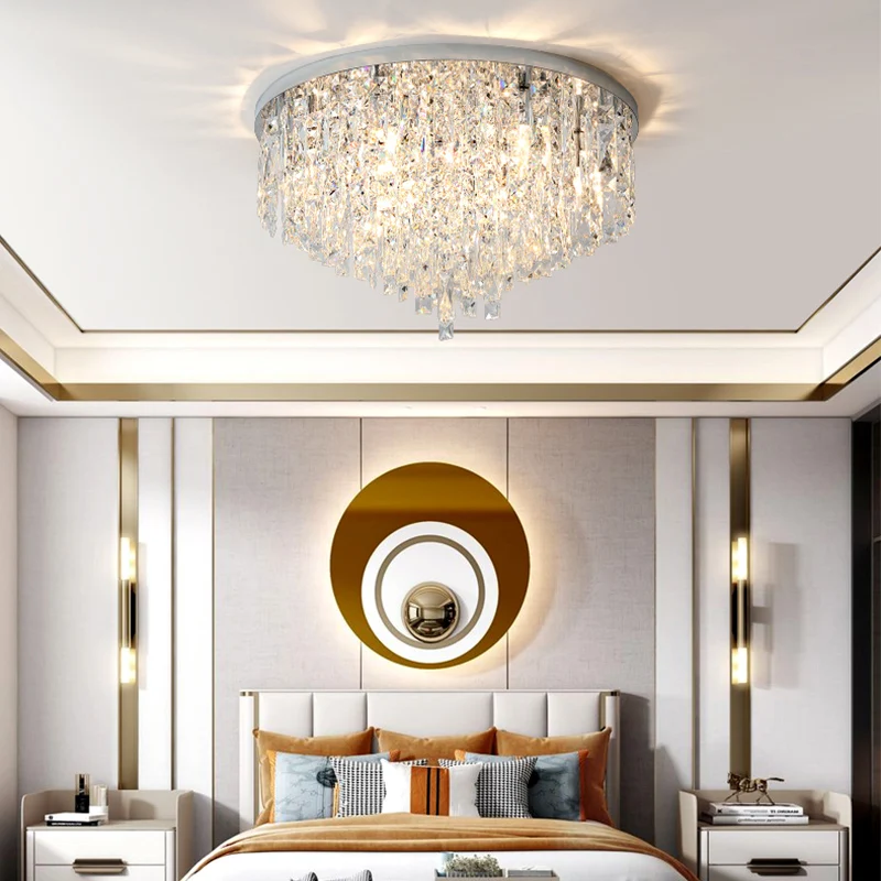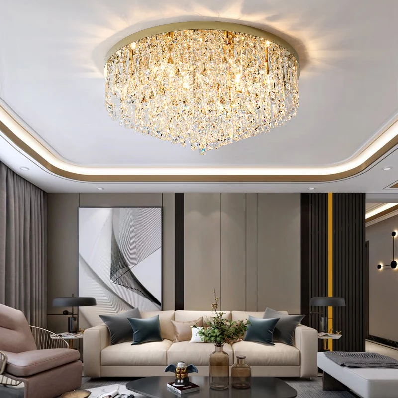 Round Crystal Ceiling Chandelier Lights Hotel Surface Mounted Raindrop Three Color Celling Lamp for Living Room