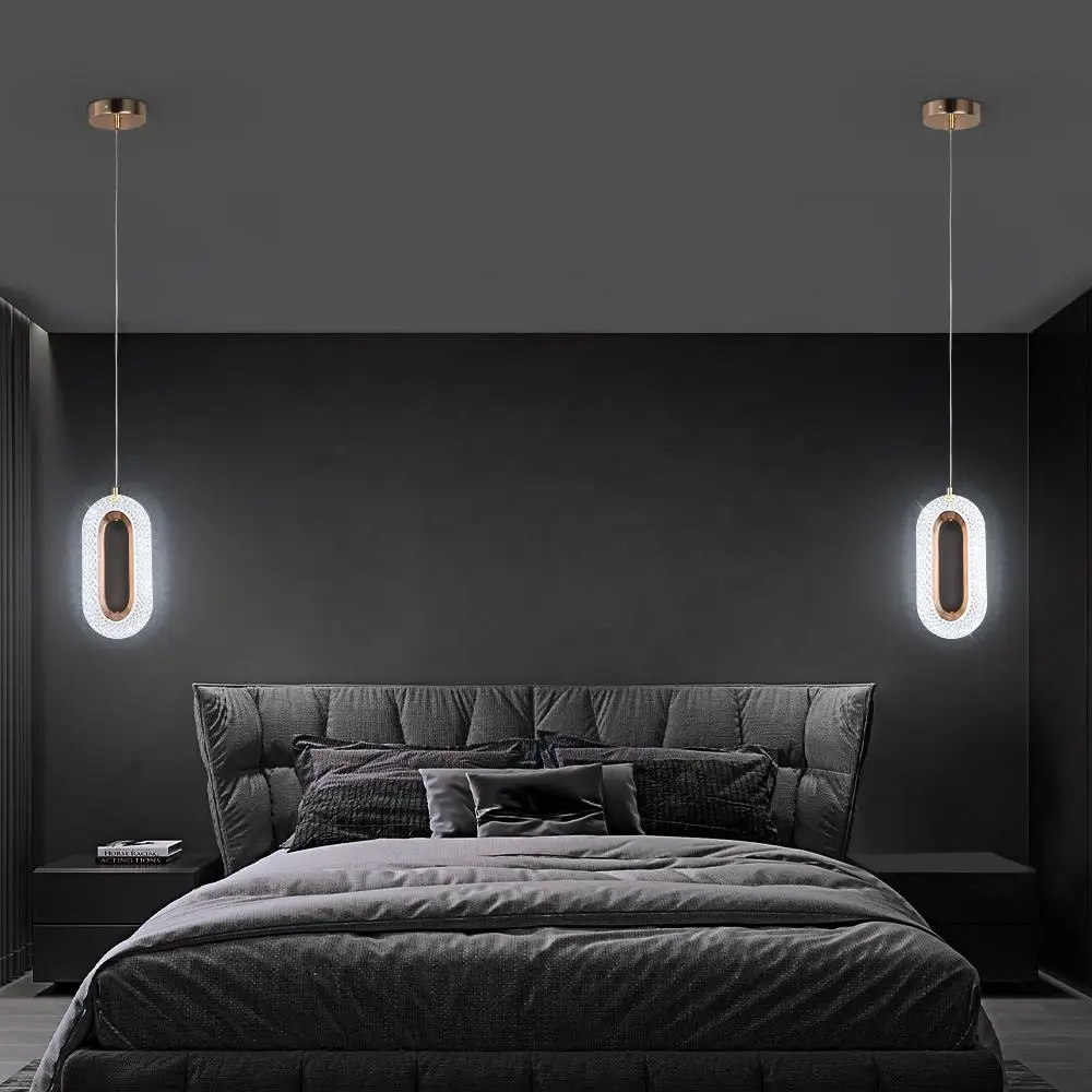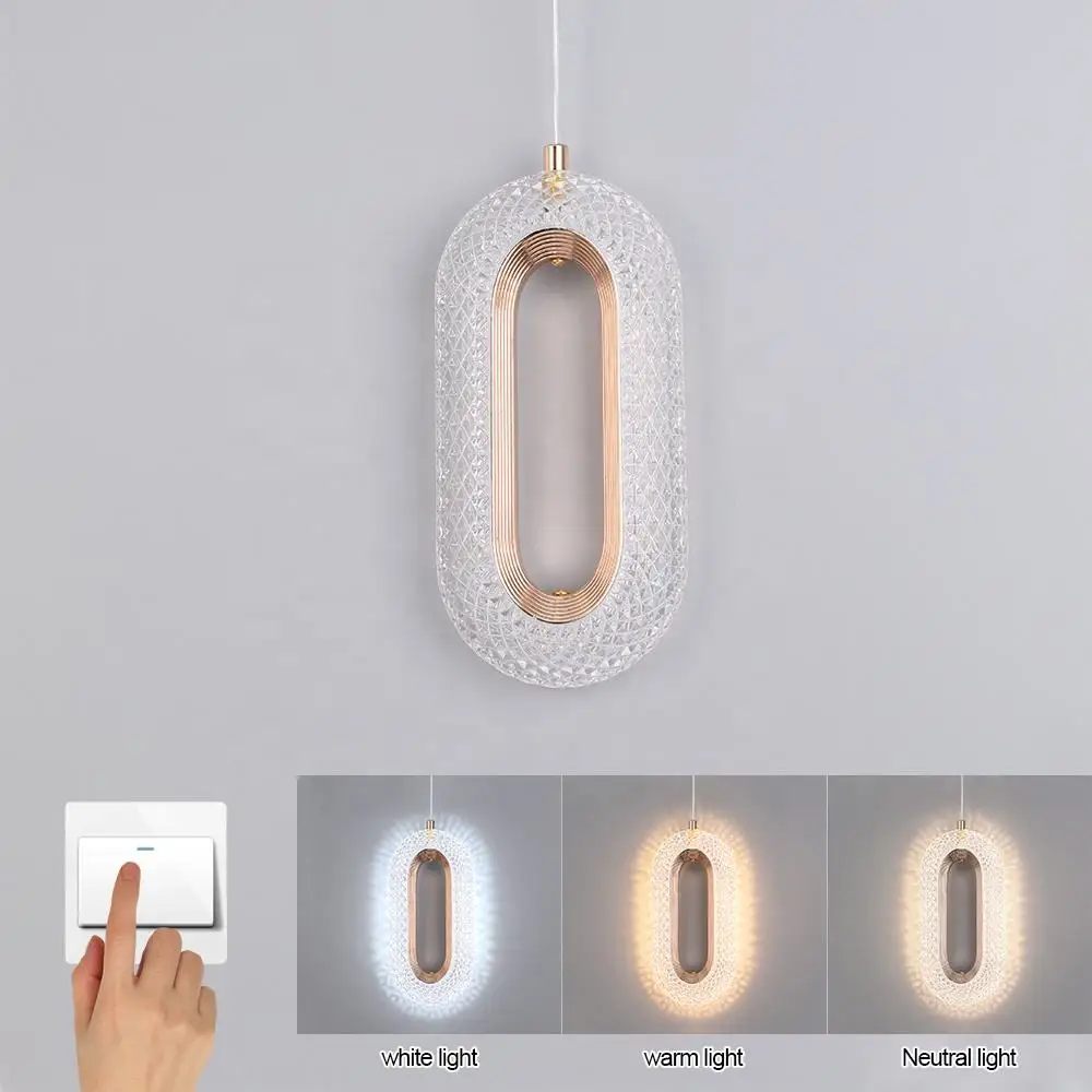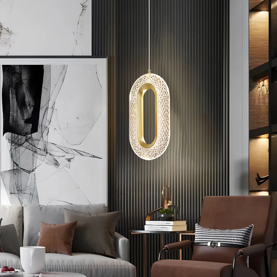 Crystal Ring Long Line Small Chandelier Minimalist Background Wall Ceiling Pendant Light Modern for Bedroom