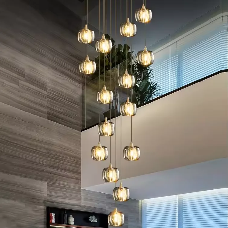 Zeal Lighting Long Stairwell Hanging Pendant Light Staircase Villa Duplex Stair High Ceiling Crystal Chandelier