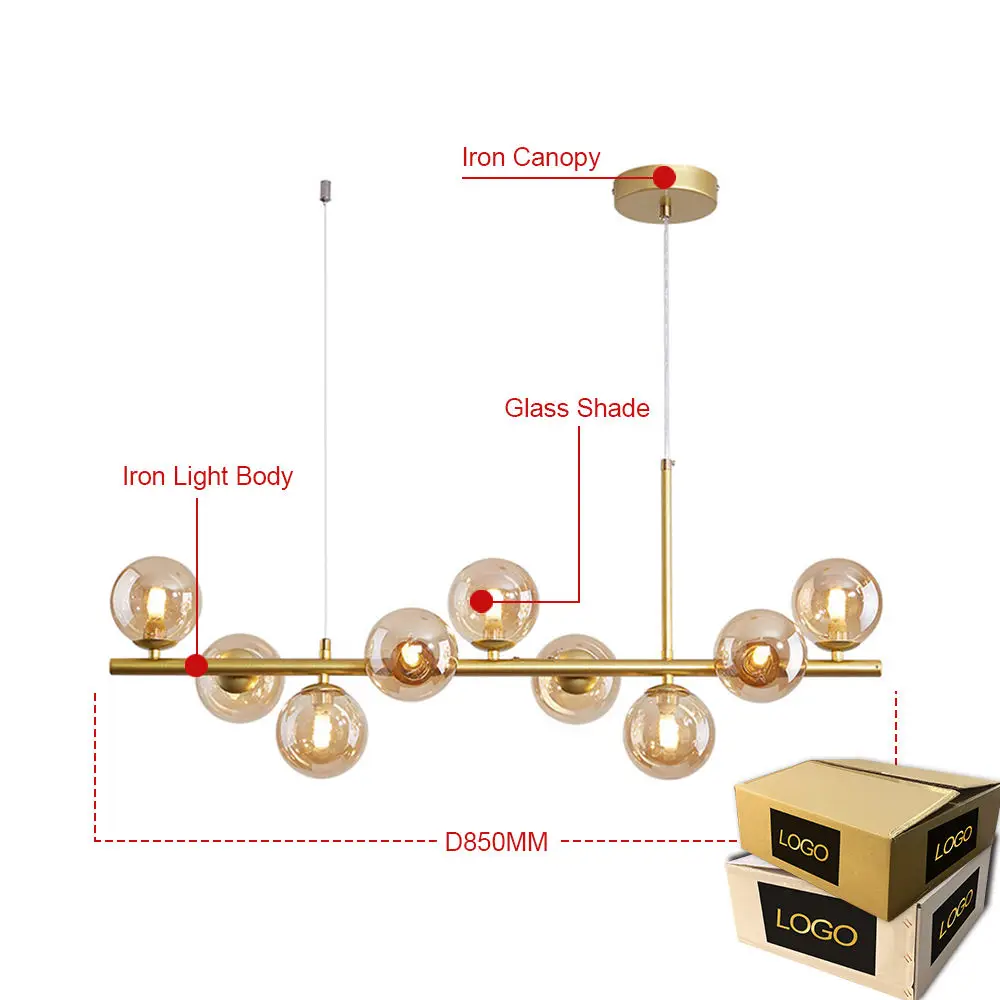Glass Ball Pendant Lights Living Room Black Gold Iron Nordic Modern Led Chandelier Dining Room Kitchen