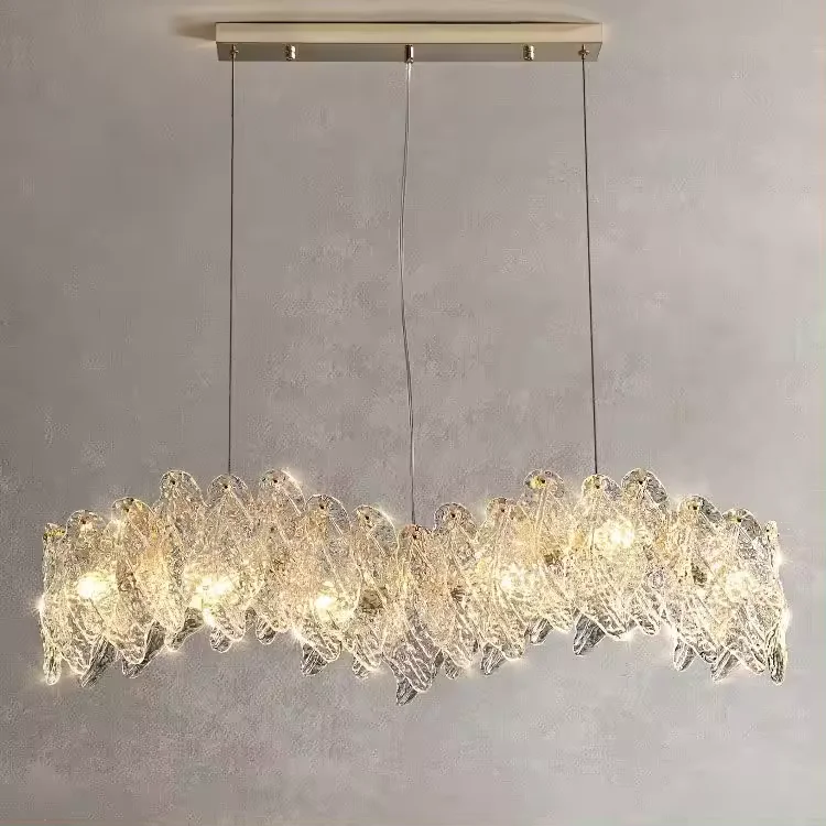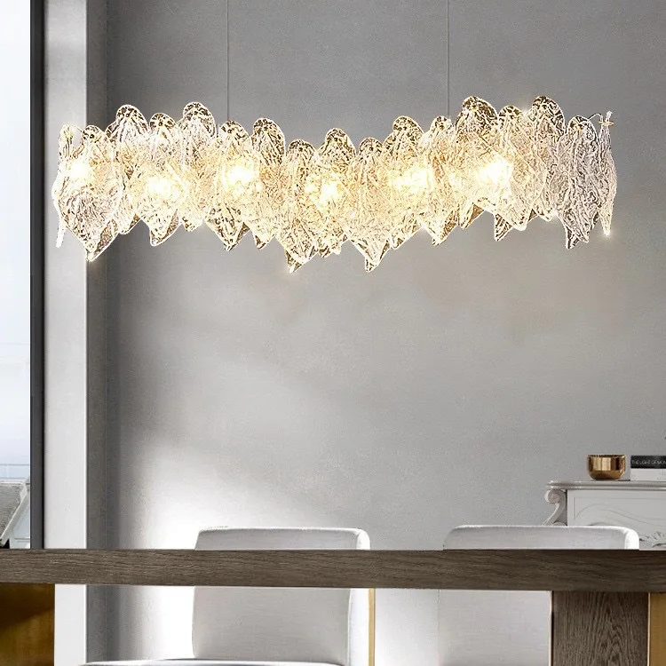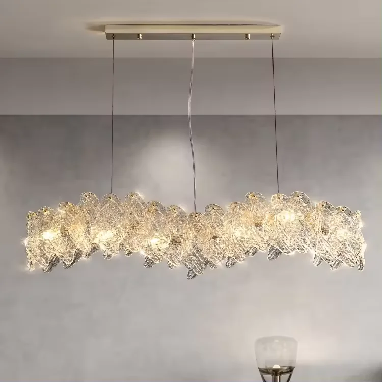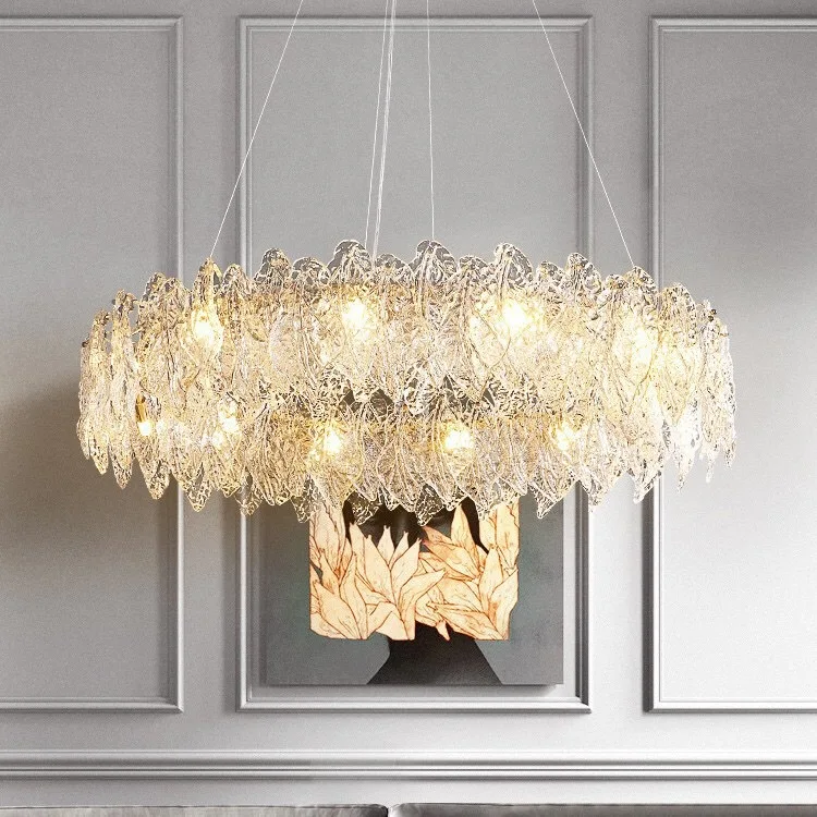 Art Deco Led Nordic Leaf Shape Glass Chandelier Circle Pendant Lights Fixtures for Hotel Dining Room