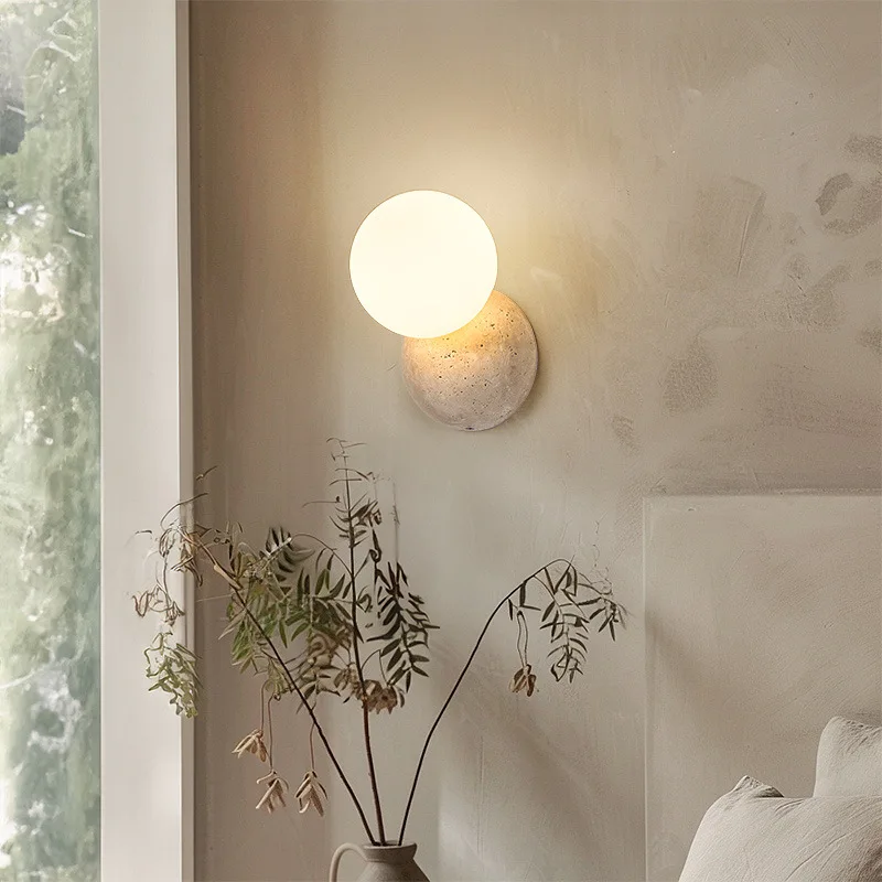 Japanese Wabi Sabi Yellow Travertine Bedroom Bedside Stone Wall Light Wall Lamp Led for Corridor Lighting