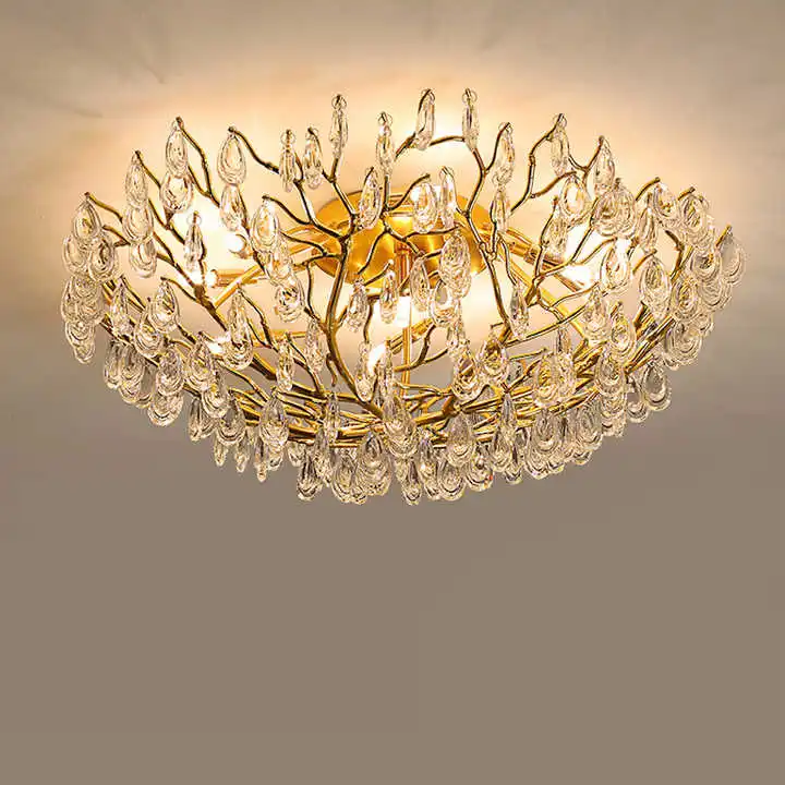 Vintage Hotel Luxurious Gold Brass Branches Crystal Raindrop Modern Ceiling Chandelier Lights