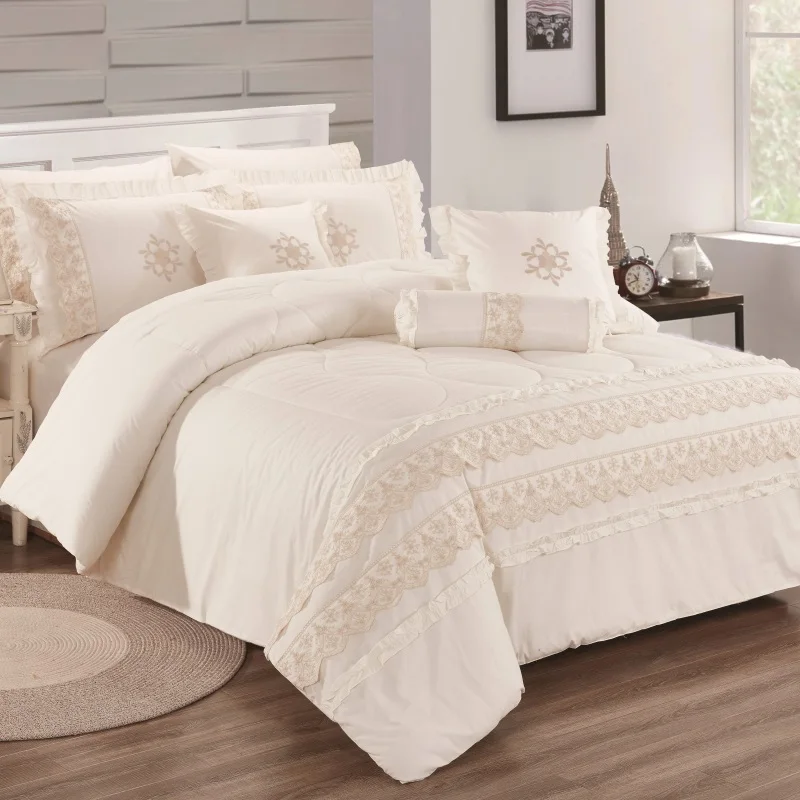 For KOSMOS Microfiber Embroidery Bedding 8-Piece Quilted Comforter Set 200TC Plain Style with 8pcs Home Use Wholesale Comforter