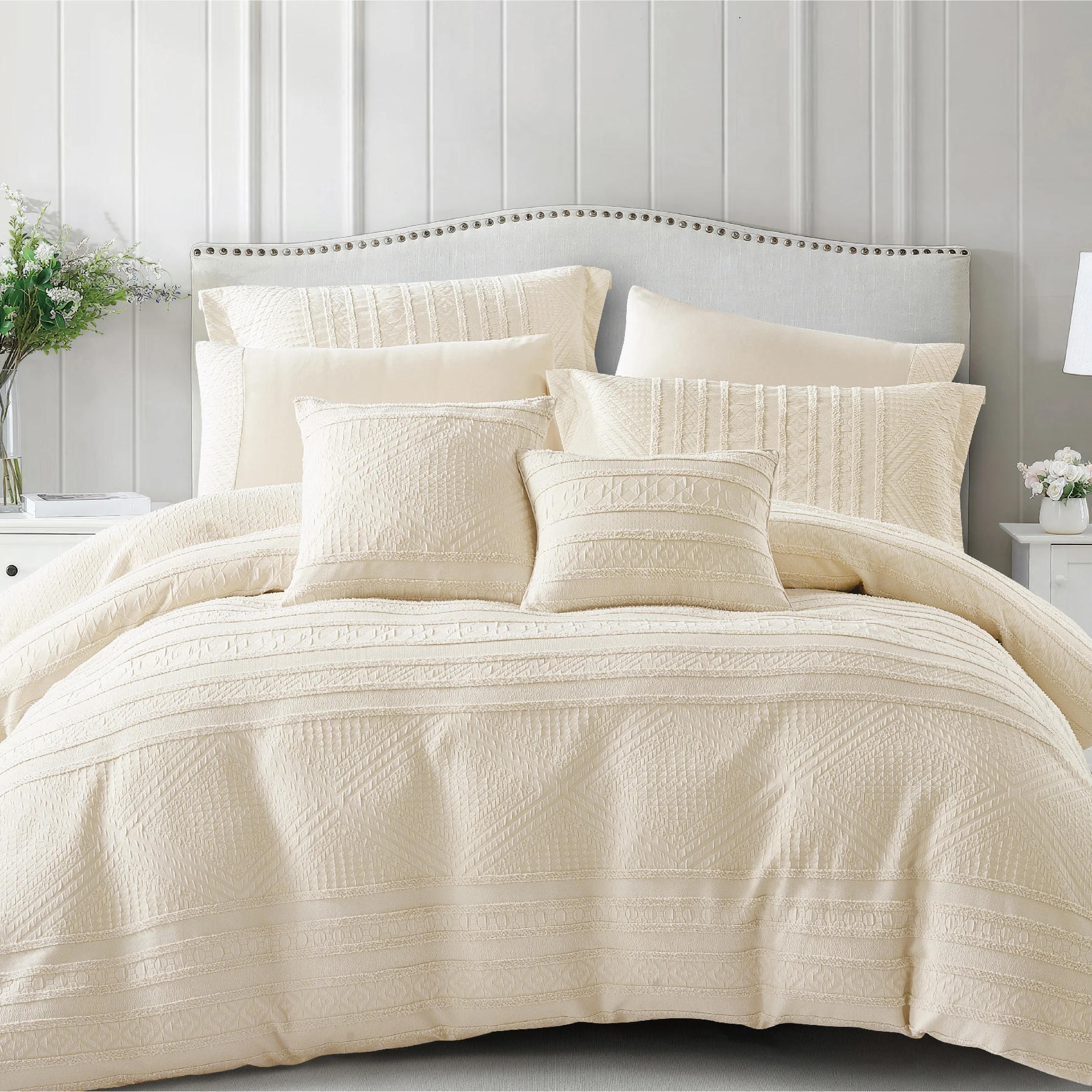 Natural Hypoallergenic Woven Modern Bamboo Duvet Cover Set Organic Cooling King Size 300tc Summer Bedding