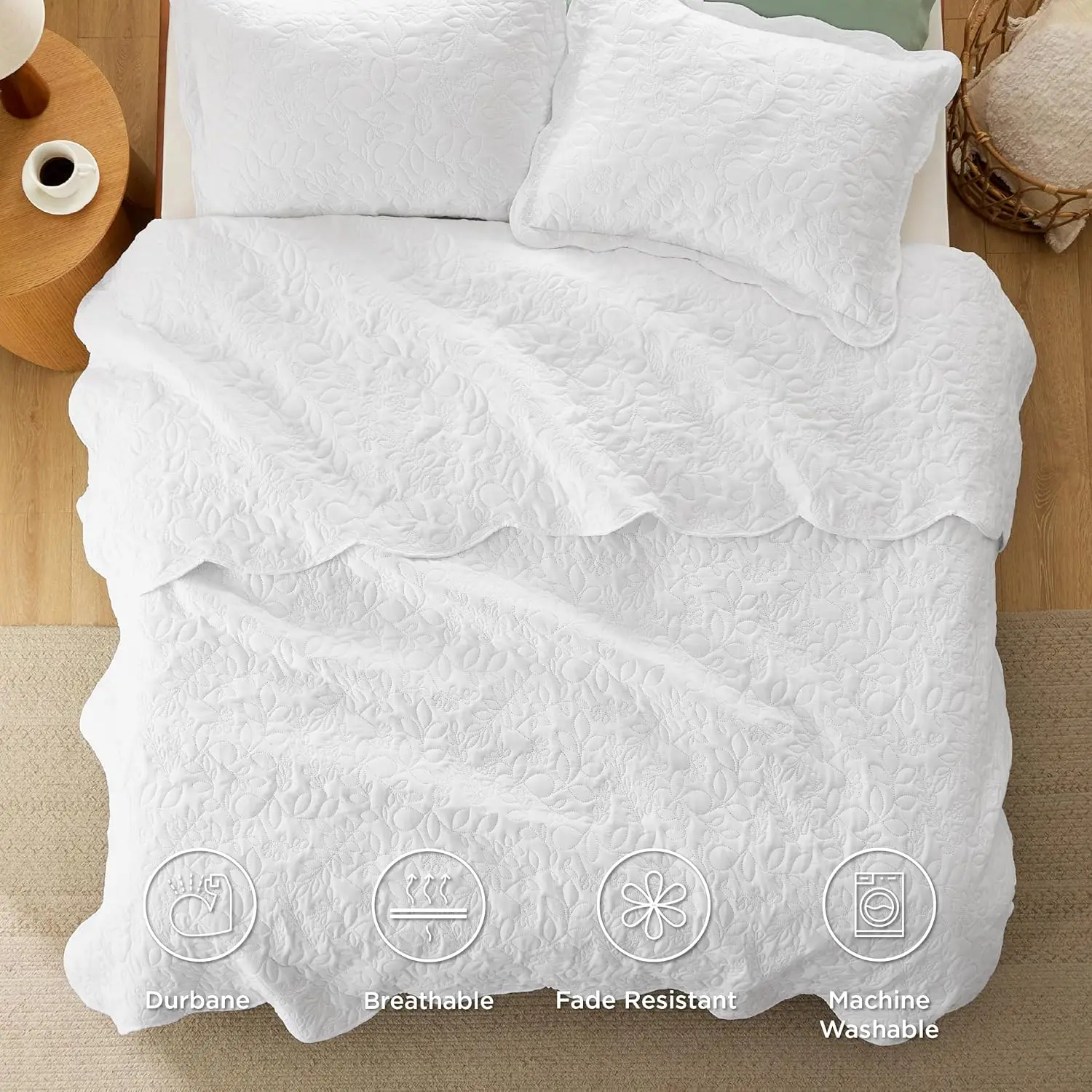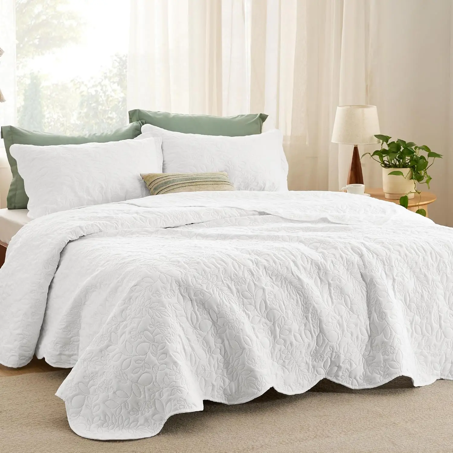 Quilts - Ultra Soft Pre-Washed Bedspread - Lightweight Comforter with 2 Pillow Shams - Summer Bedding Set with Leaf Design