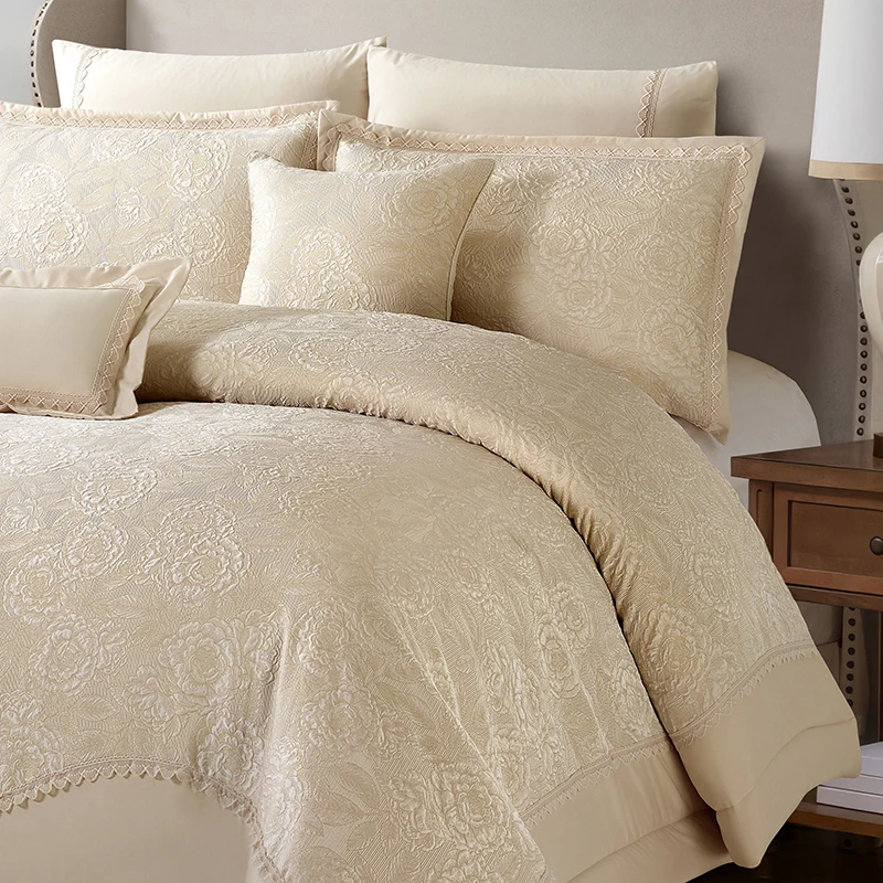 Modern Luxury 8pcs Quilt Set Elegant Jacquard Lace Designer Bedding Comforter Solid Color Elegant Jacquard Lace 8pcs Quilt Set