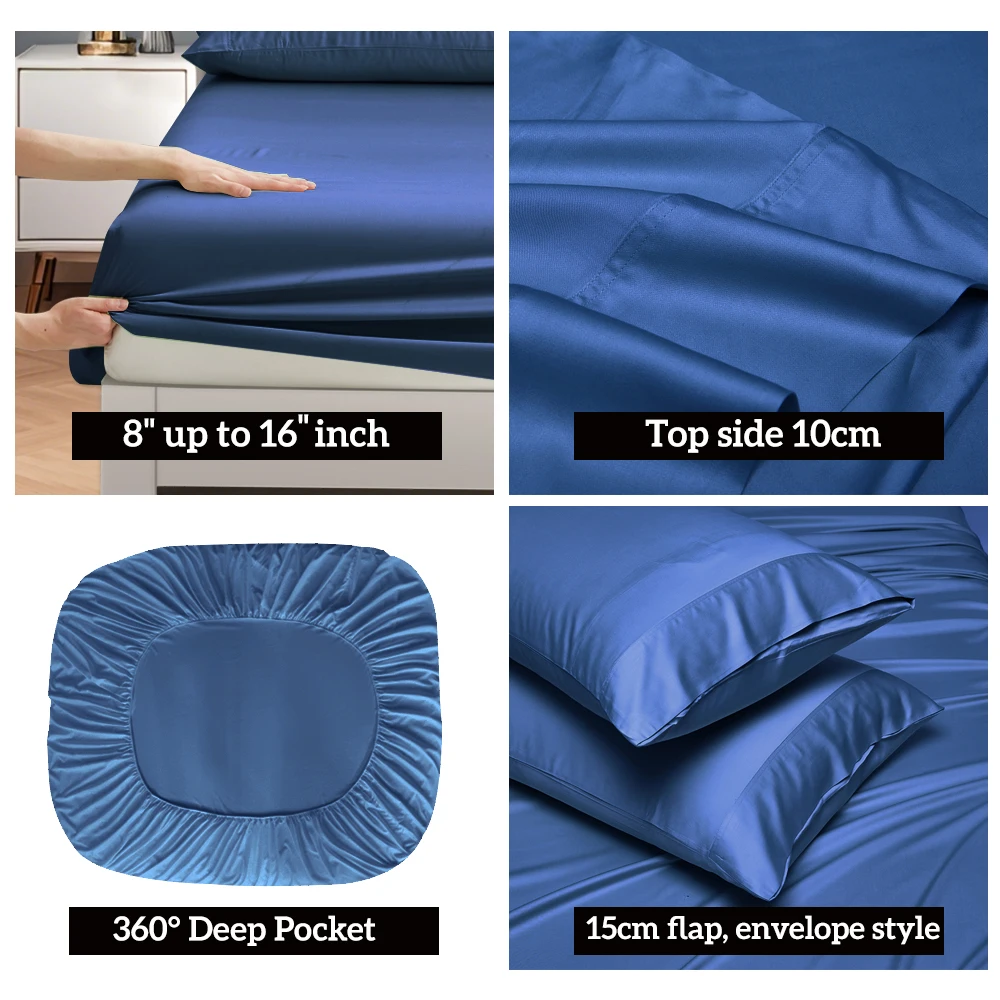 100% Bamboo Fiber Woven Modern Solid Color Bedding Set Super King Size Includes Flat Bed Sheet Fitted Duvet Cover