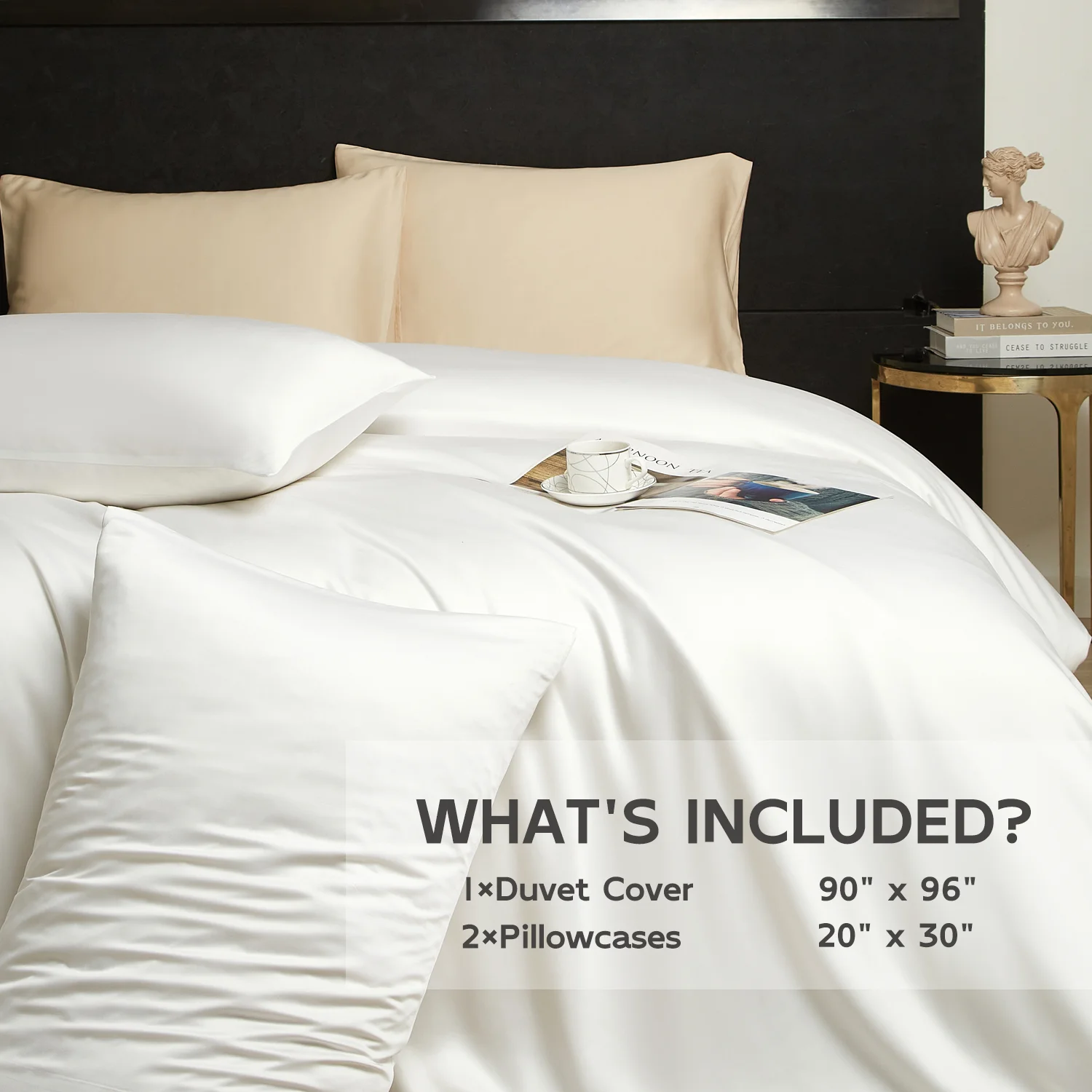 100% Bamboo Fiber Woven Modern Solid Color Bedding Set Super King Size Includes Flat Bed Sheet Fitted Duvet Cover