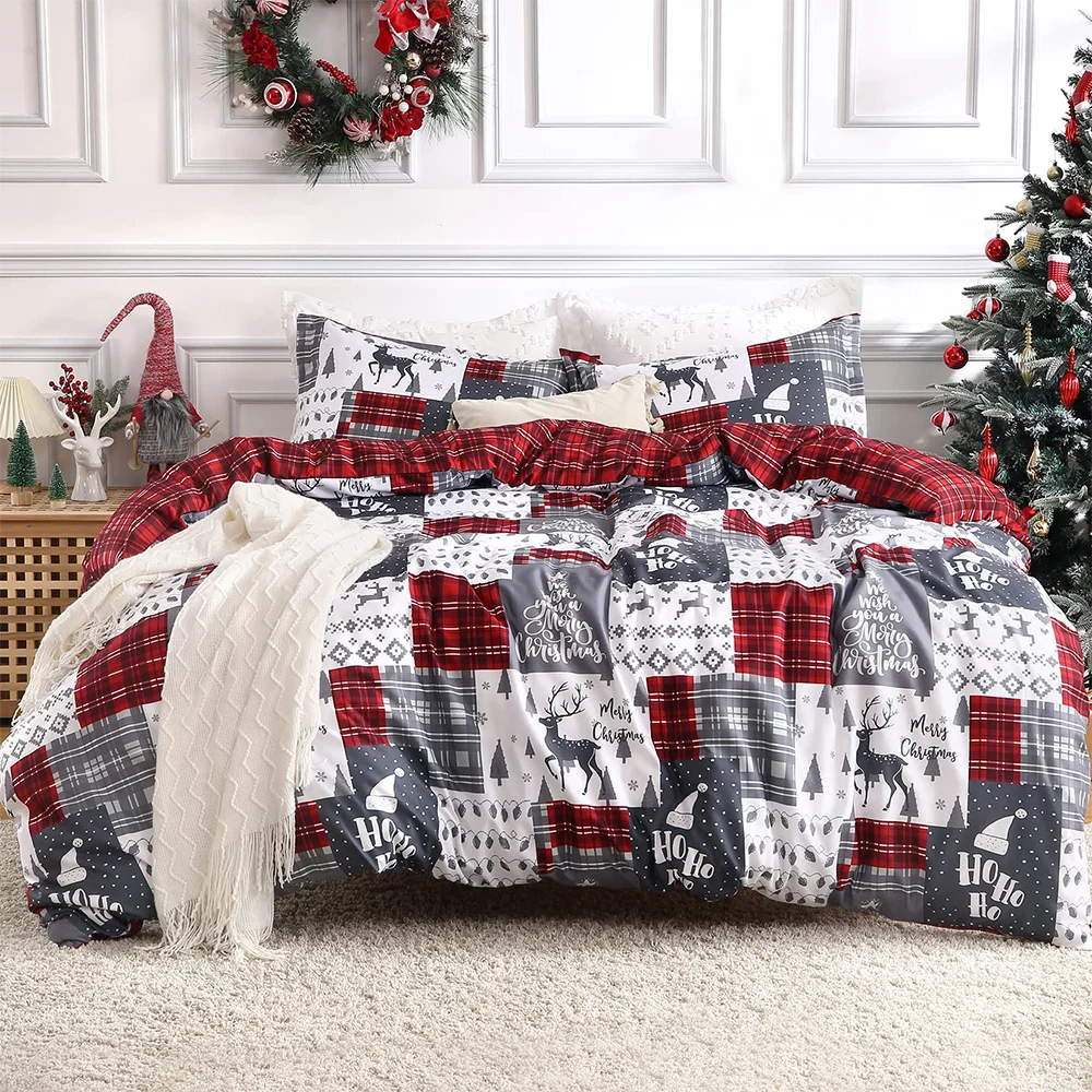 Customized Luxury Pure Cotton Quilted Christmas Printed Bedding Comforter Duvet Cover With Pillow Case