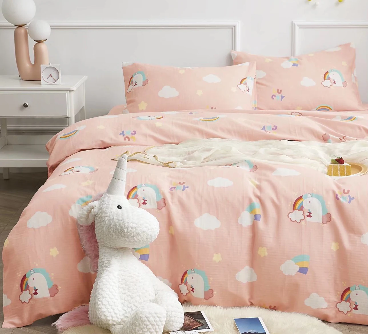 100% Bamboo Fiber Woven Modern Solid Color Bedding Set Super King Size Includes Flat Bed Sheet Fitted Duvet Cover