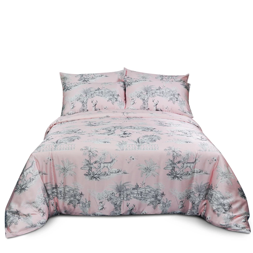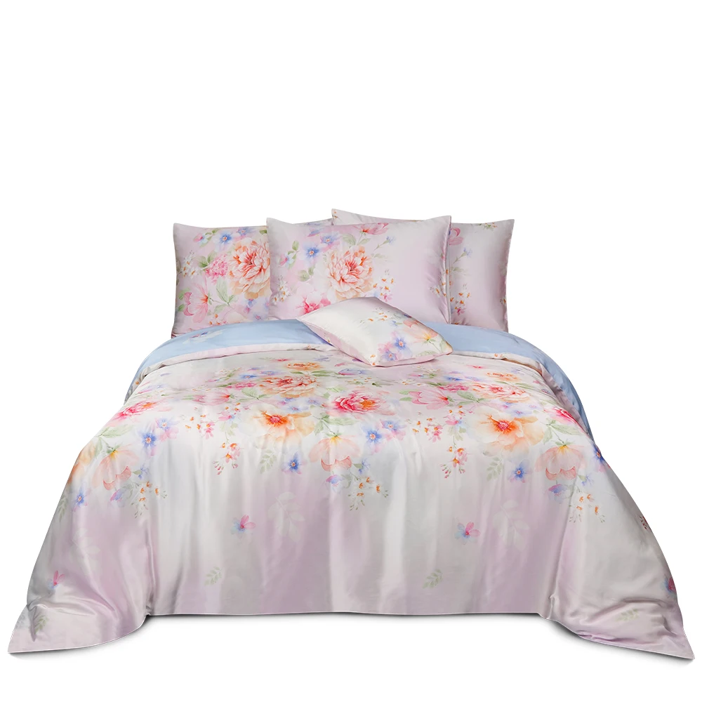 Skin Friendly Custom 4 Piece Tencel Bed Sheet Luxury Lyocell Bedding Sets Duvet Cover 3D Microfiber Bedsheets Wholesale