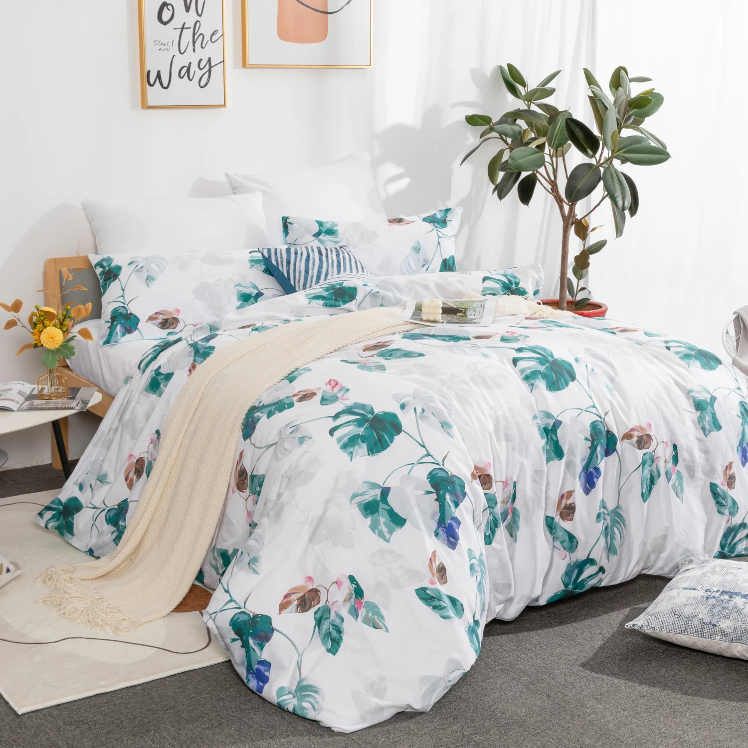 100% Bamboo Fiber King Size 300tc 3-Piece Modern Duvet Cover Set with Flat Sheet Fitted Sheet and Pillowcases