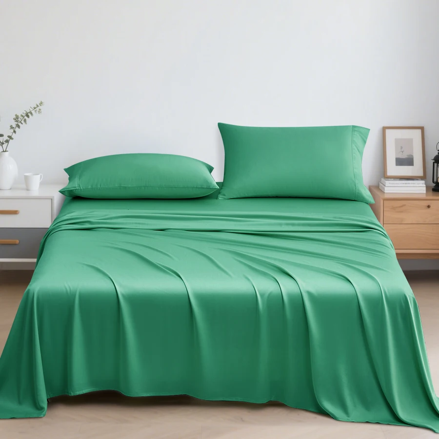 100% Bamboo Fiber Woven Modern Solid Color Bedding Set Super King Size Includes Flat Bed Sheet Fitted Duvet Cover