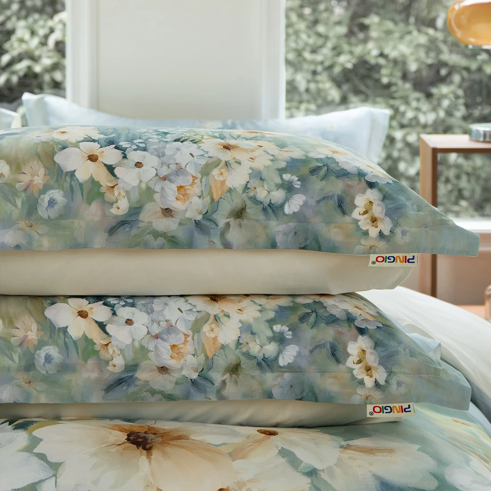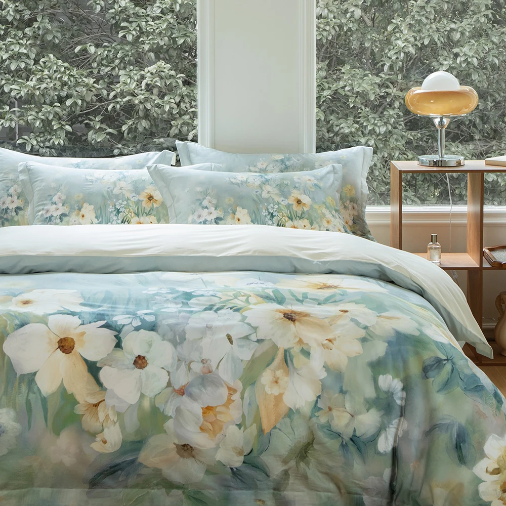Botanical Spring Painting Design Luxury Cotton Duvet Cover Sets Digital Printed Bedding Set Customization