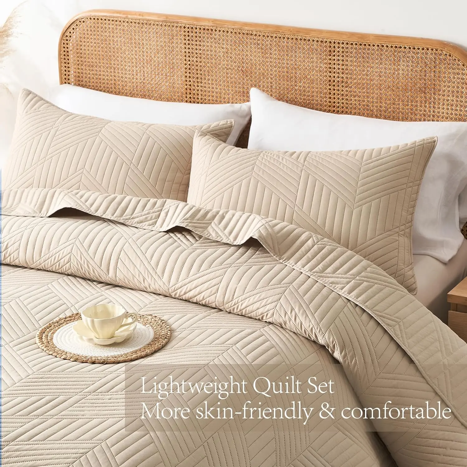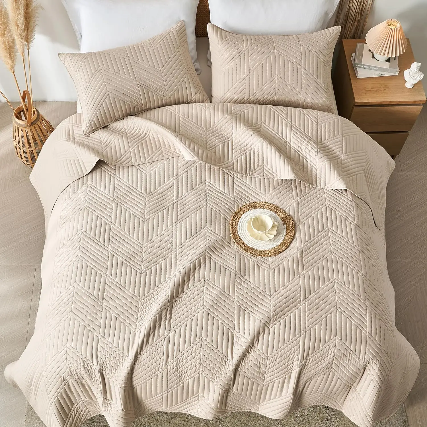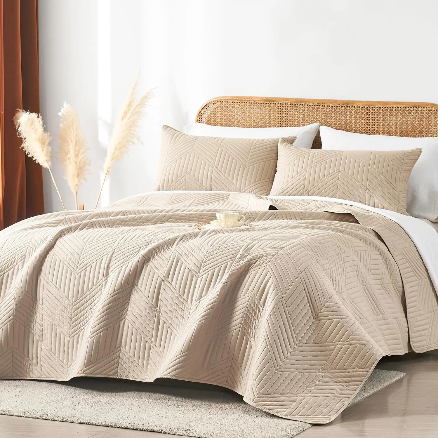 High Quality Home Use Microfiber Polyester Solid Quilts Bedspread Set