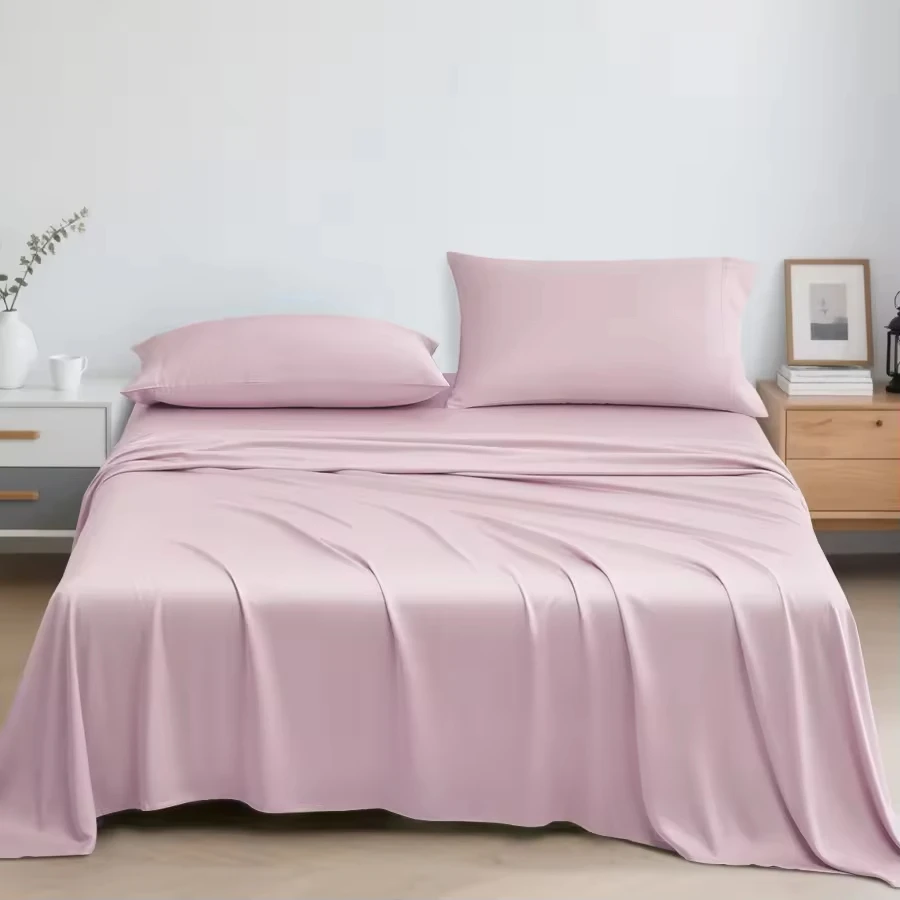 100% Bamboo Woven Modern Solid Color Bedding Set Flat Sheet Fitted Sheet Pillowcases 300tc Thread Count Wedding Four-piece Kit