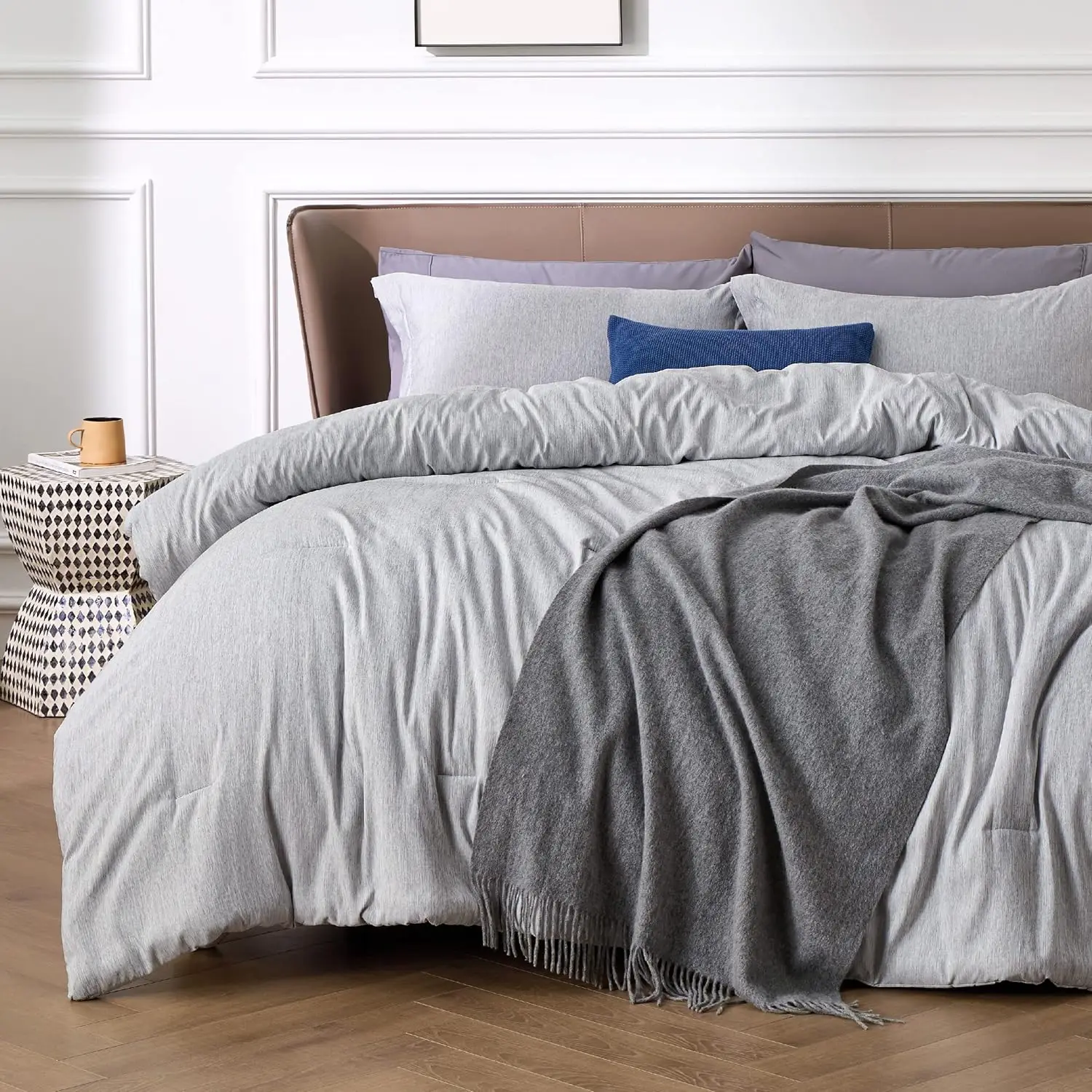 100% Bamboo Fiber Woven Modern Solid Color Bedding Set Super King Size Includes Flat Bed Sheet Fitted Duvet Cover