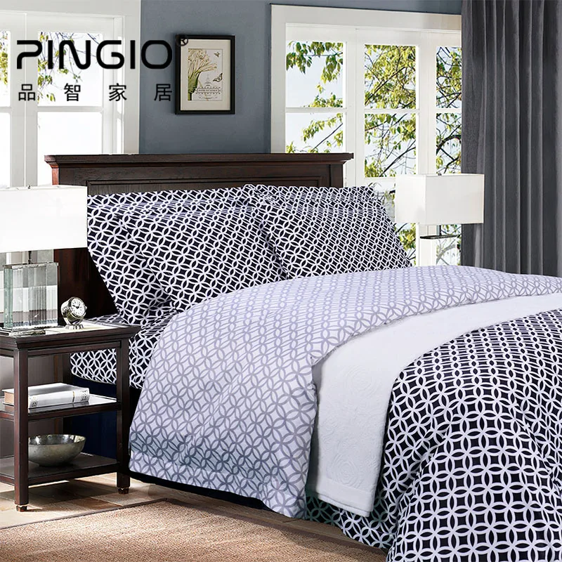 Modern Hot Sale Bed Linen Black and White Geometric Pattern 4 Piece Flat Sheet Comfortable Bedding Set Classic