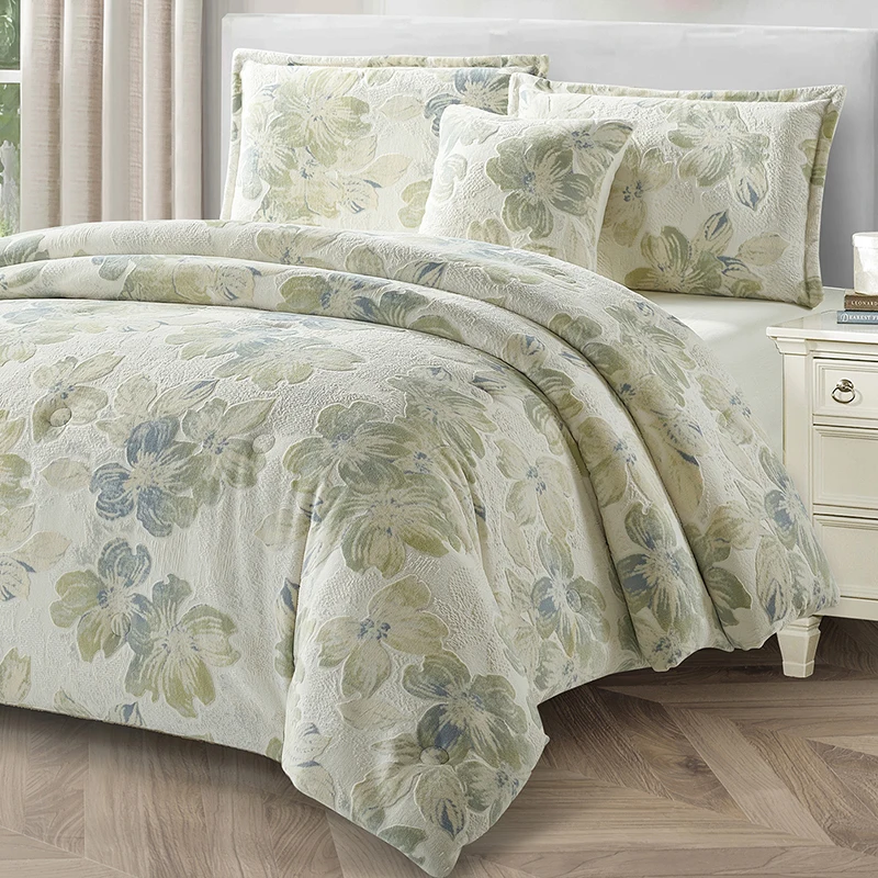 Customized Jacquard Bedding Comforter Set Vintage Fantasy Flowers Winter Woven 5 Pcs Included