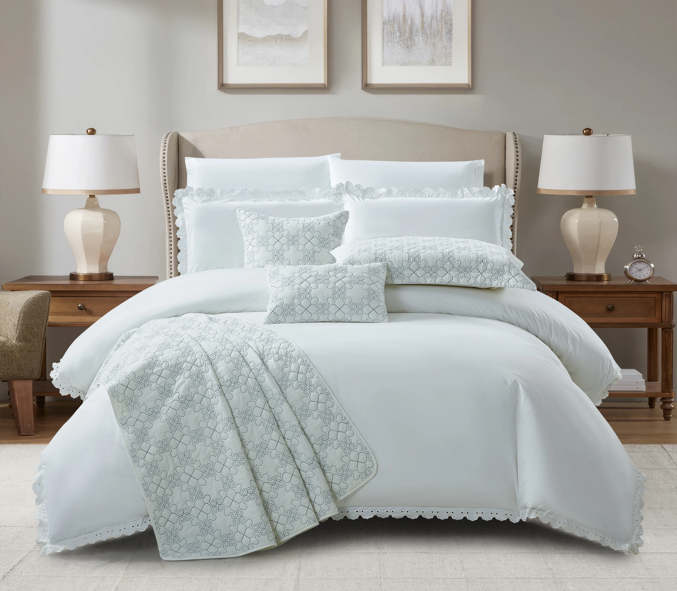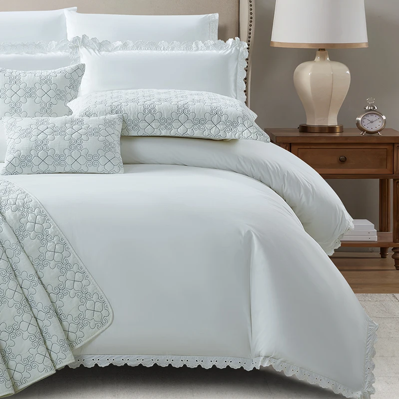 KOSMOS Customized Modern Style Elegant Simple Duvet Cover with Lace Comforter Dreamy Bedding Set Home Textiles Made of Polyester