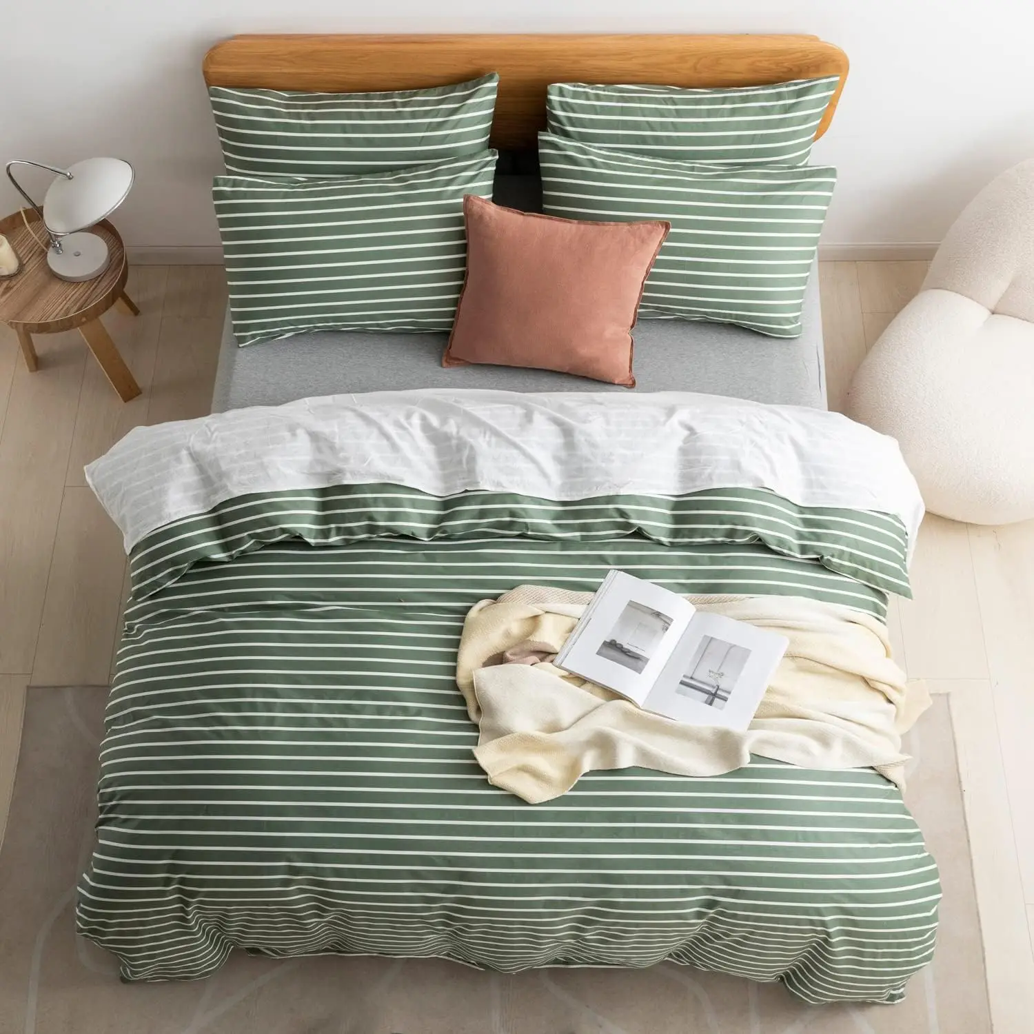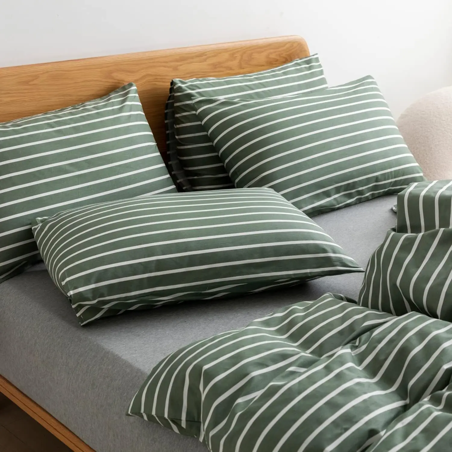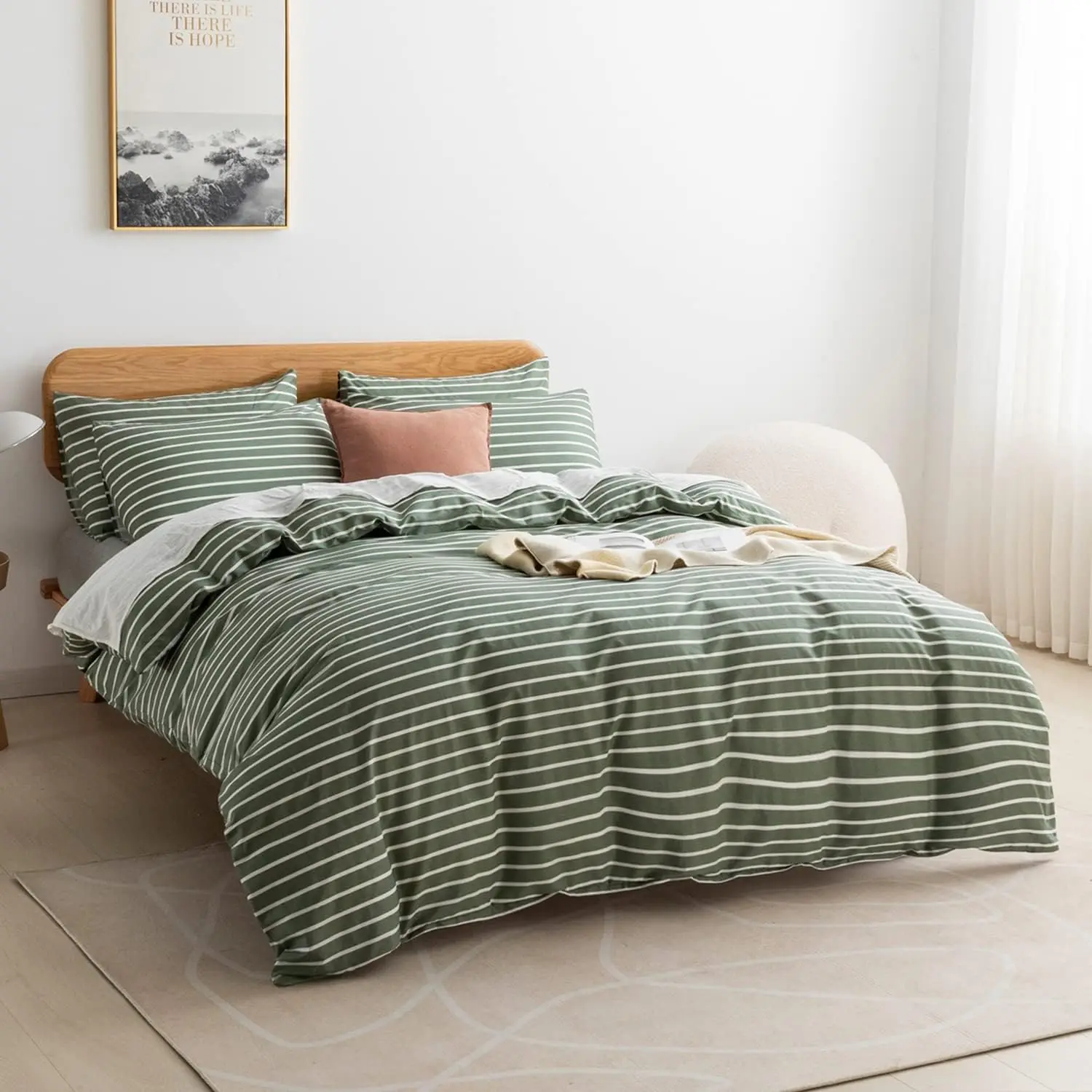 100% Natural Cotton 3pcs Striped Duvet Cover Sets, Stripes Pattern Printed Comforter Cover,with Zipper Closure & Corner Ties