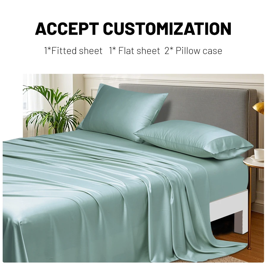 100% Bamboo Woven Modern Solid Color Bedding Set Flat Sheet Fitted Sheet Pillowcases 300tc Thread Count Wedding Four-piece Kit