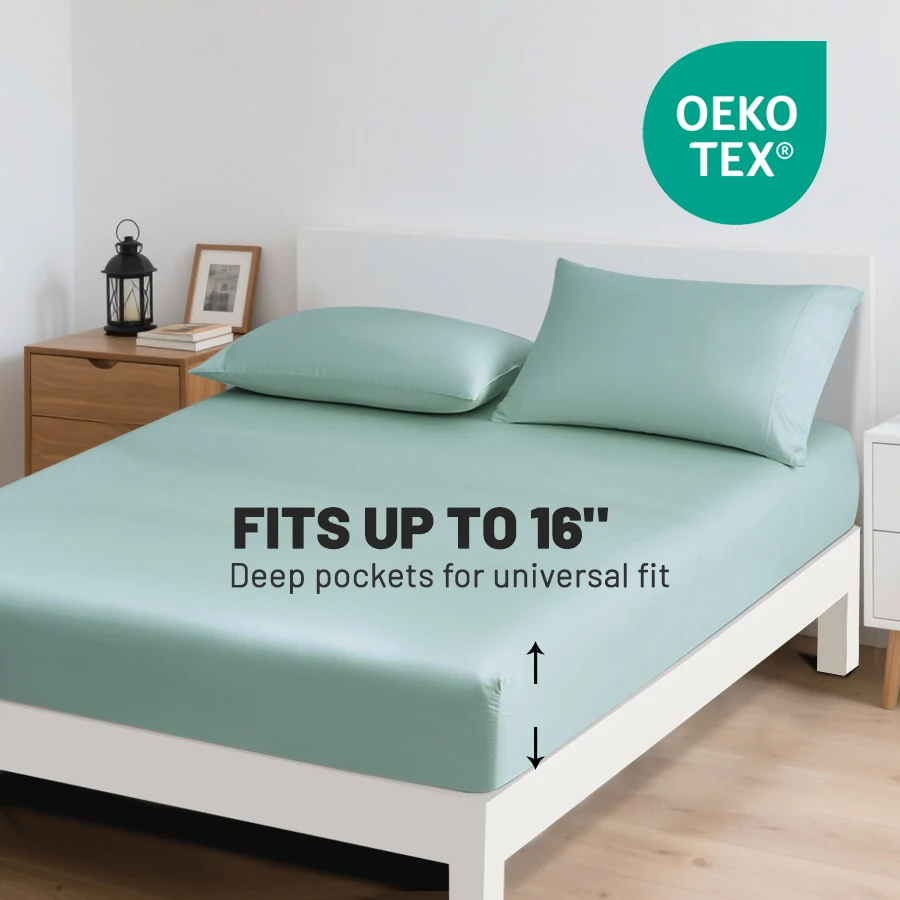 Luxury Oeko-Tex Organic Woven Bamboo Bed Sheet Set 300tc Simple Style Cooling Breathable All-Season