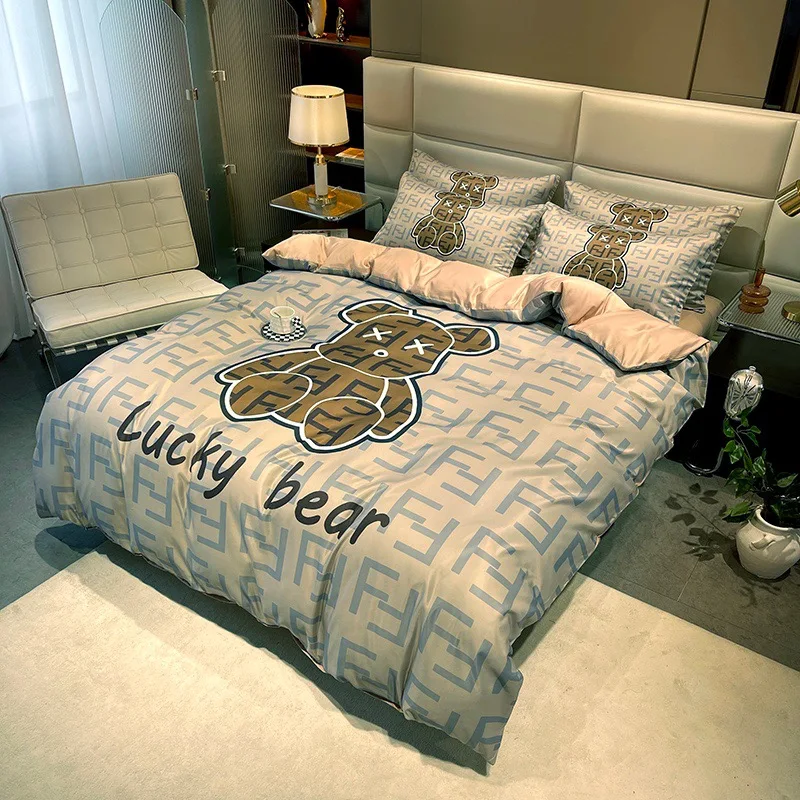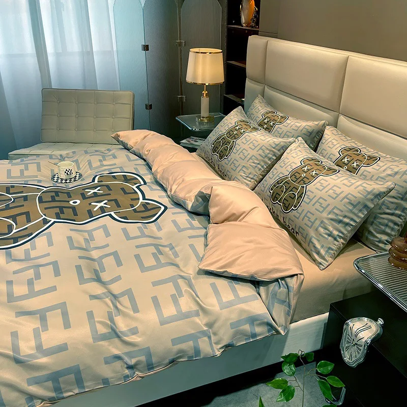 Wholesale Custom Printed Bed Sheet Set Fiber Quilt Set Pillowcase 4 Sets of Bedding