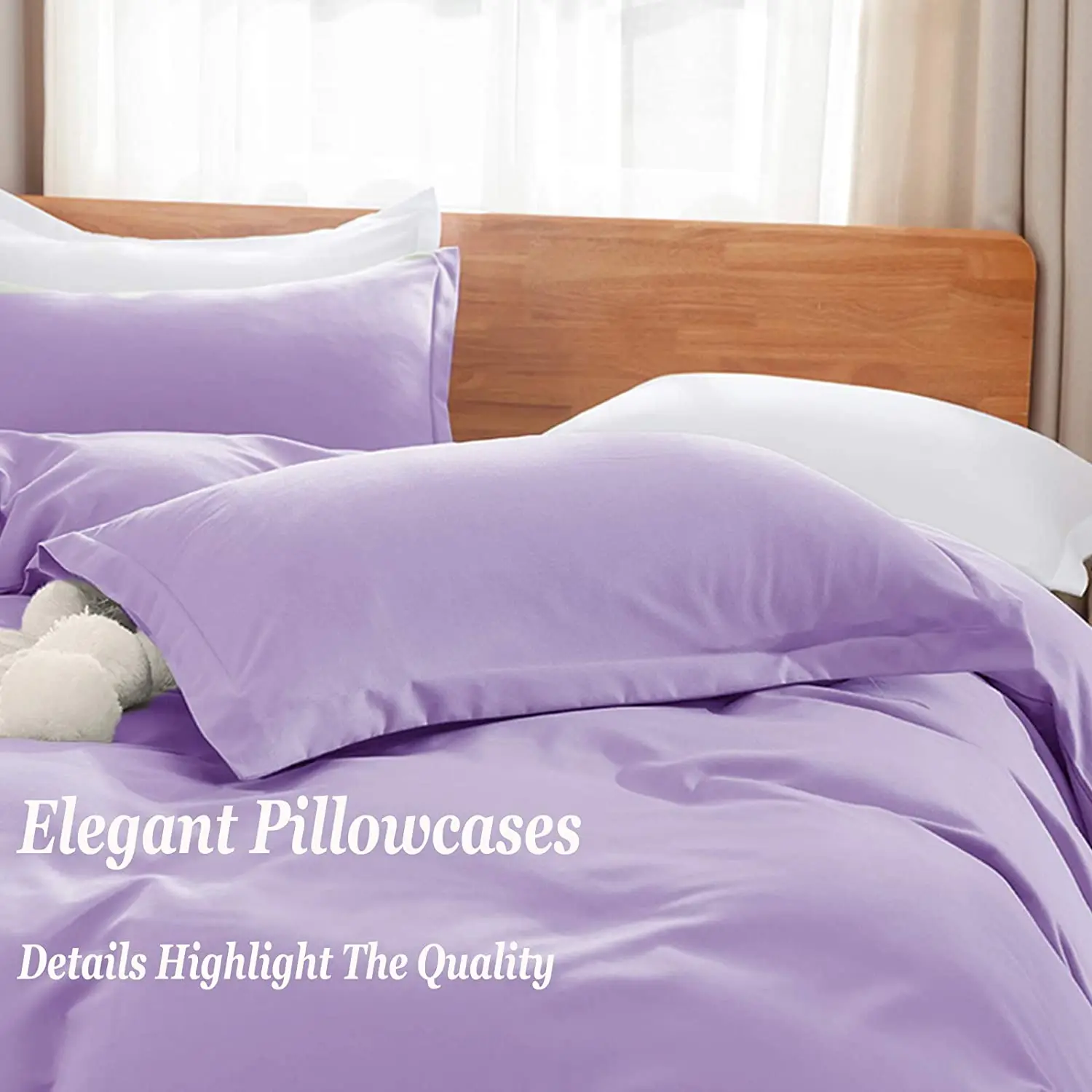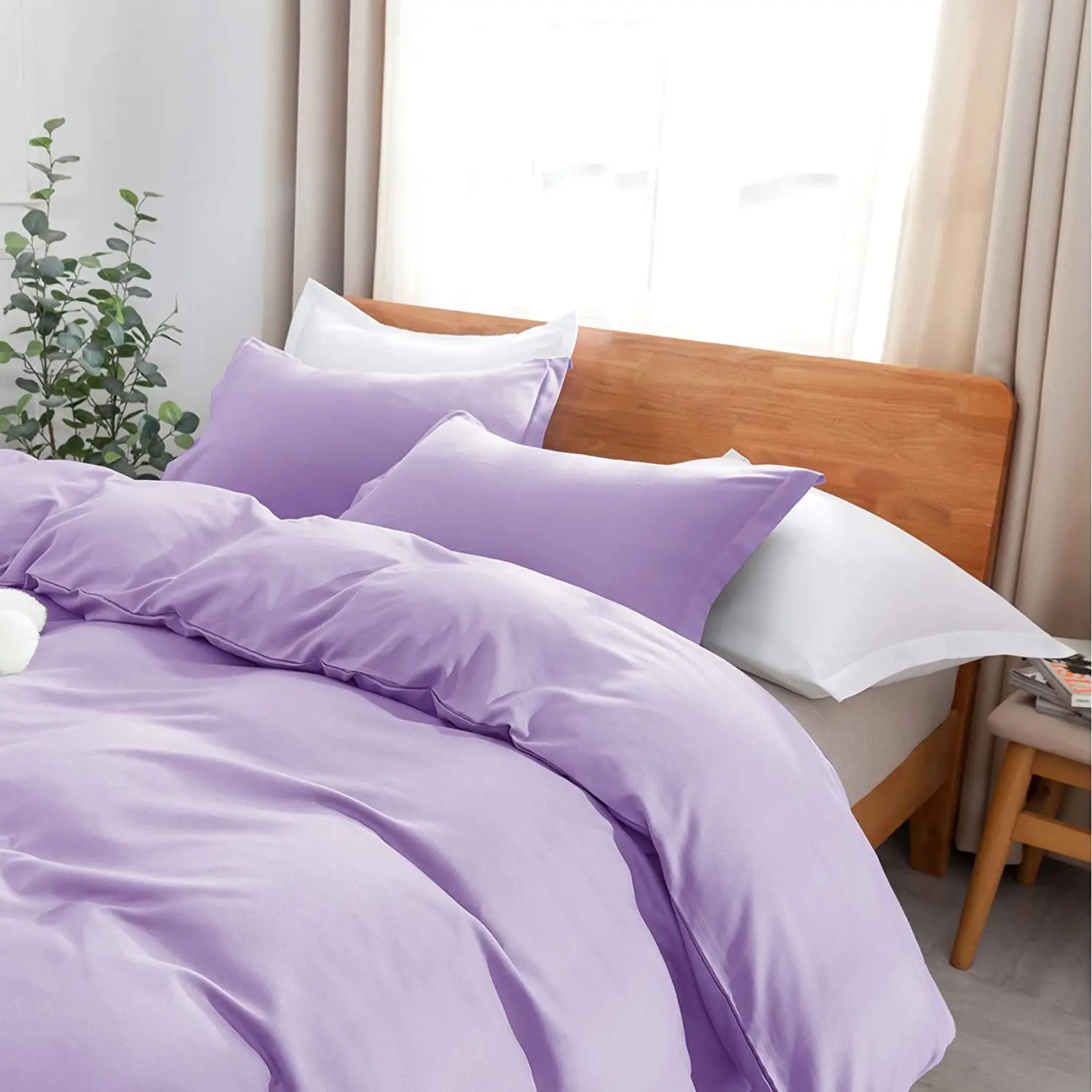 100% Bamboo Fiber Woven Modern Solid Color Bedding Set Super King Size Includes Flat Bed Sheet Fitted Duvet Cover