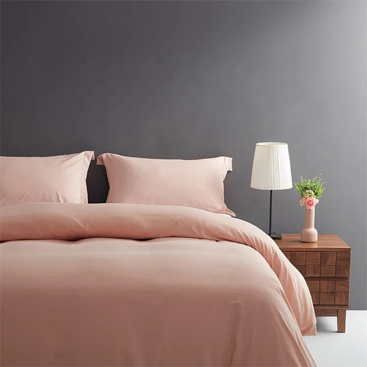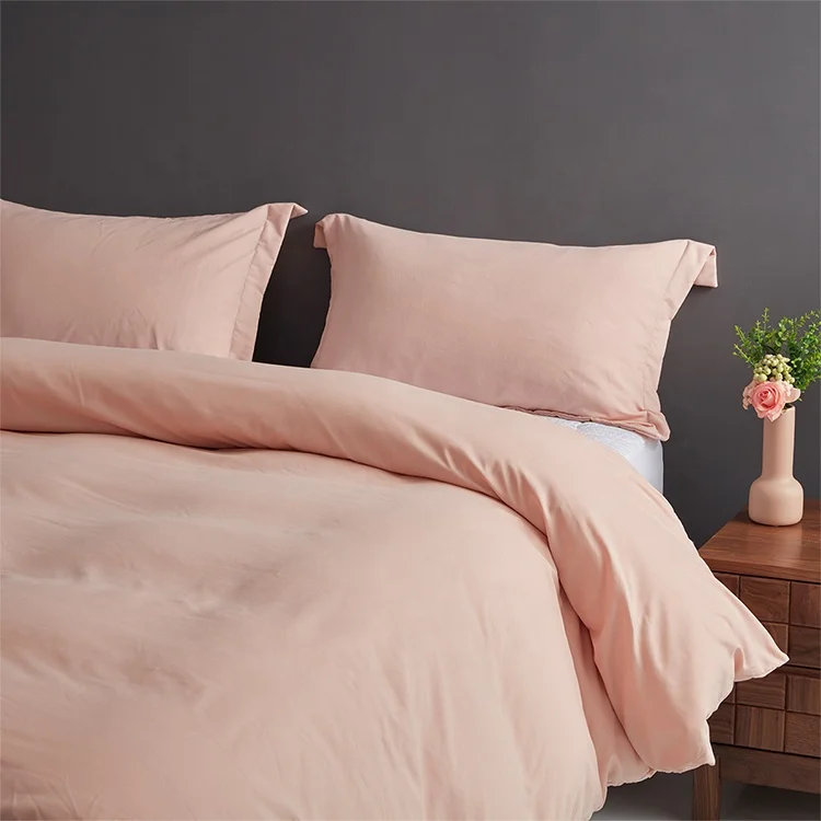 100% Bamboo Fiber Woven Modern Solid Color Bedding Set Super King Size Includes Flat Bed Sheet Fitted Duvet Cover