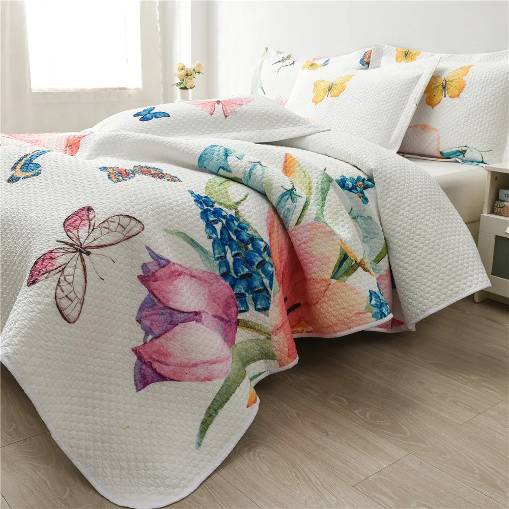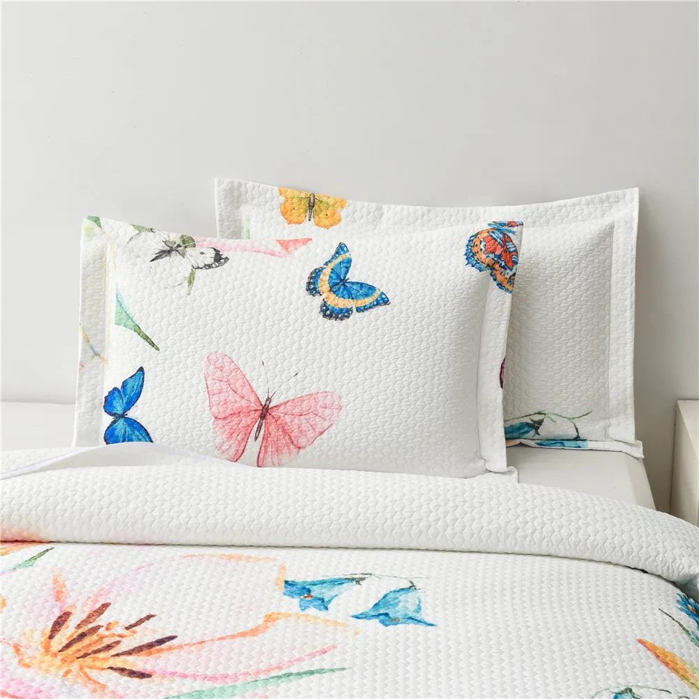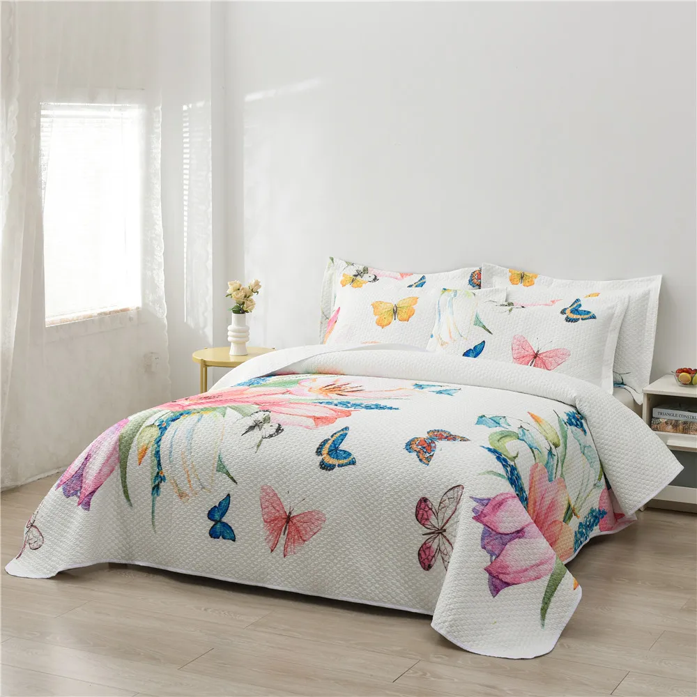 Luxury 3Pc Microfiber Bedspread Elegant Design Printed Butterfly Bedding Quilt Set