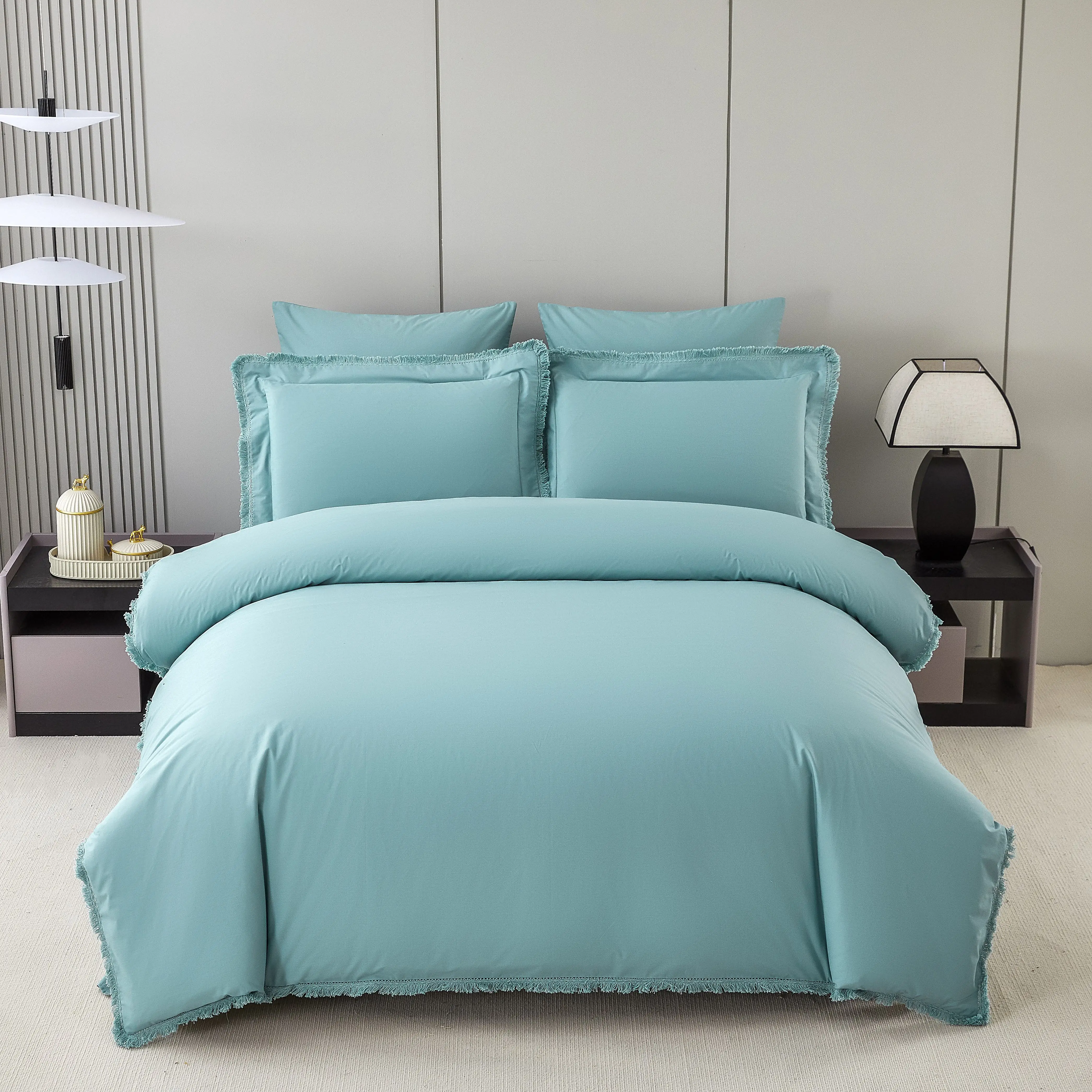 KOSMOS Cheap China Wholesale Lace Tassels Nice Bed Sheet Set Duvet Cover Set