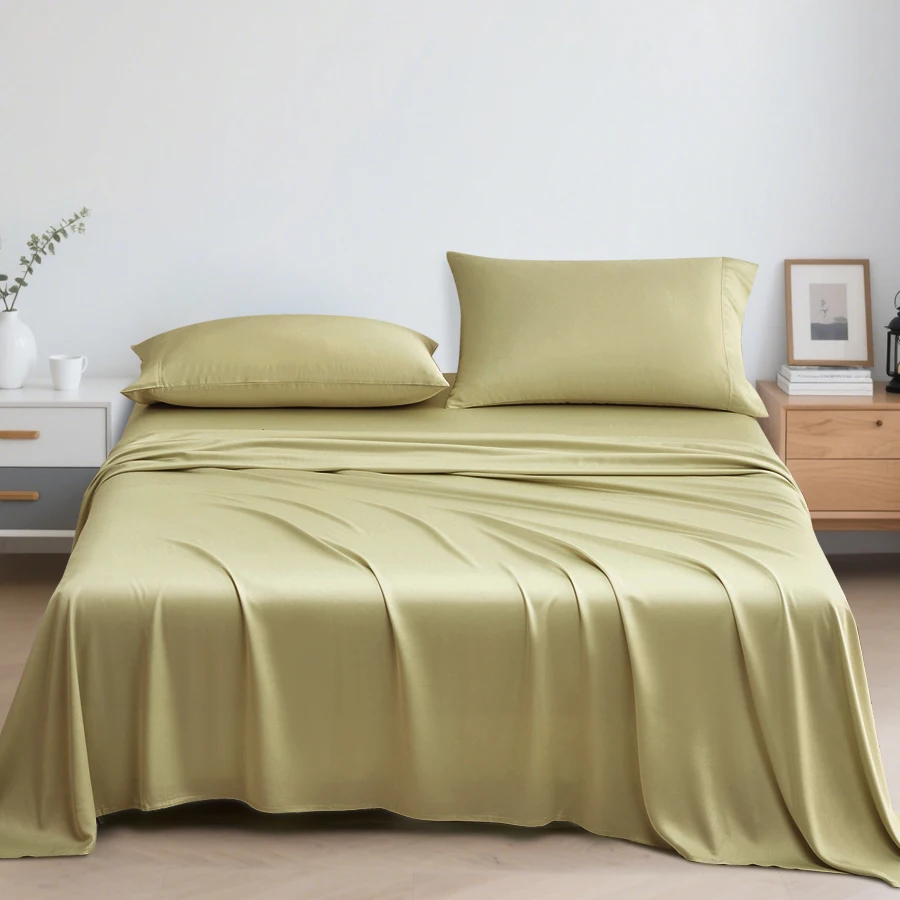 100% Bamboo Woven Modern Solid Color Bedding Set Flat Sheet Fitted Sheet Pillowcases 300tc Thread Count Wedding Four-piece Kit