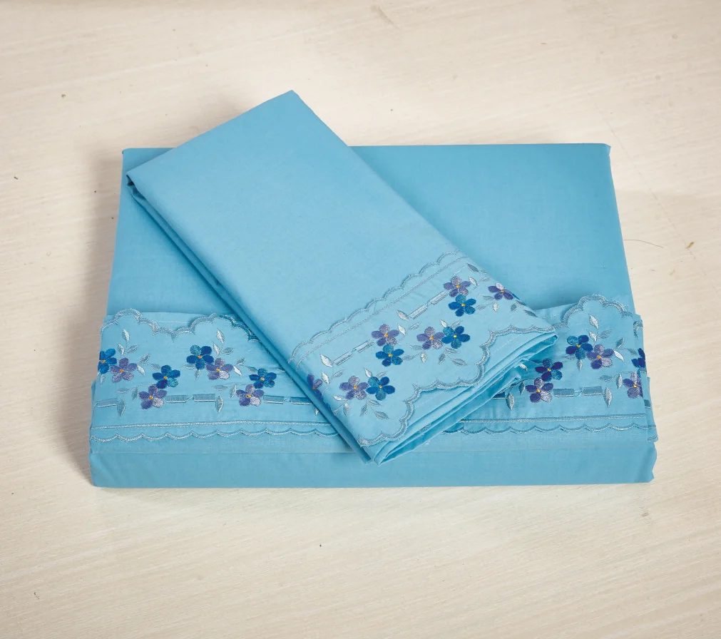 China Wholesale Embroidered Lace Bedsheet Customized Color Plain Design 100% Cotton 200TC Home & Hotel Use All-Season