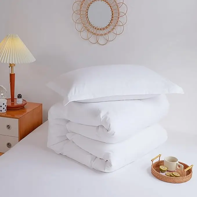 White 50% Polyester 50% Cotton Plain Weave Hotel Bedding Set 4 Piece Durable Easy Care Affordable Price
