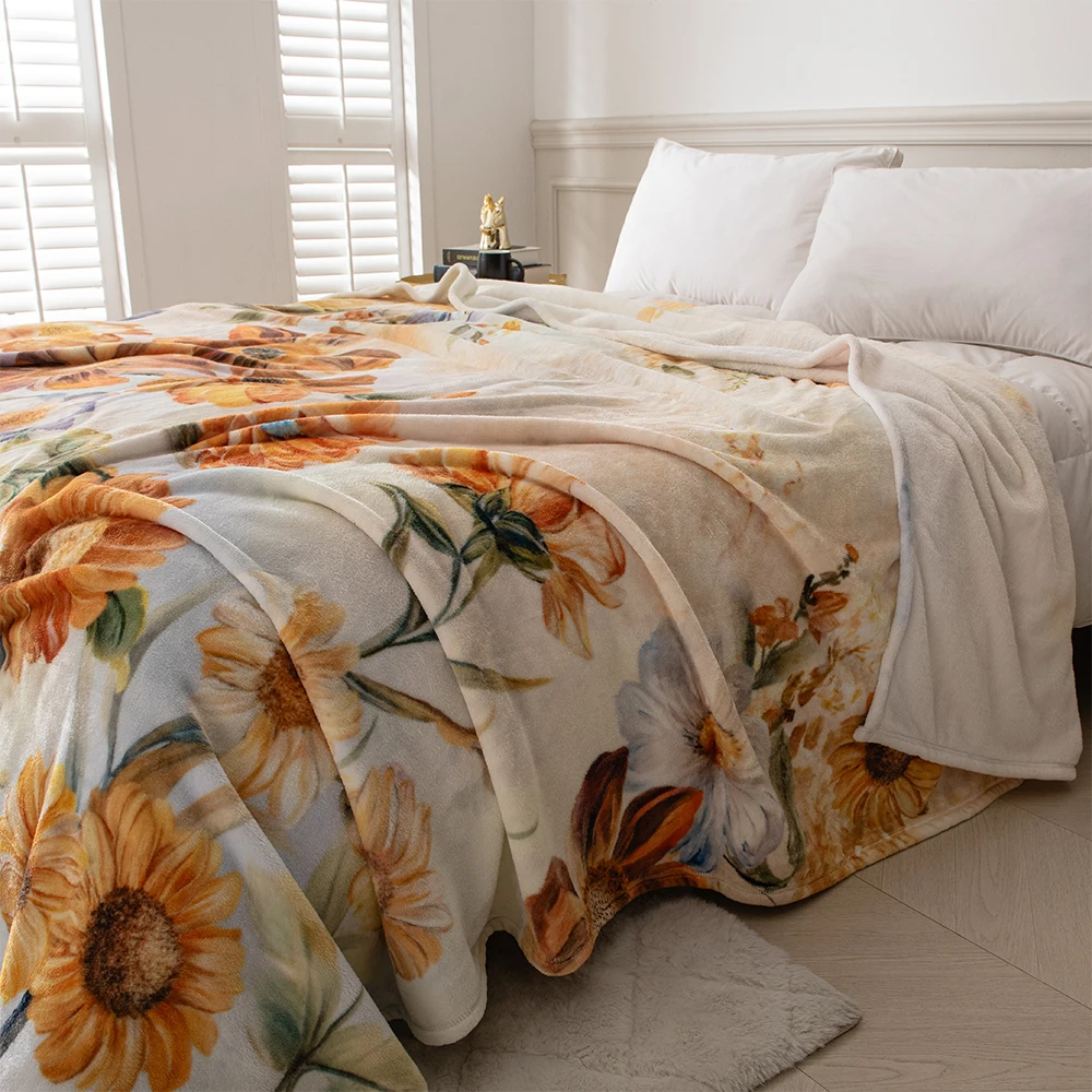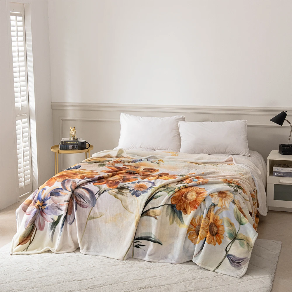 Digital Printed Bedding Flower Bouquet Blankets Floral Printed Microfiber Blanket