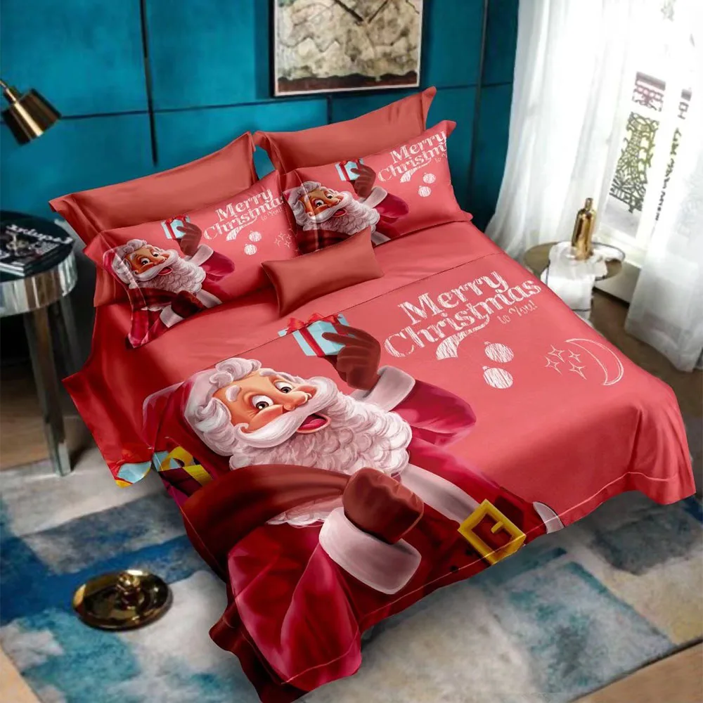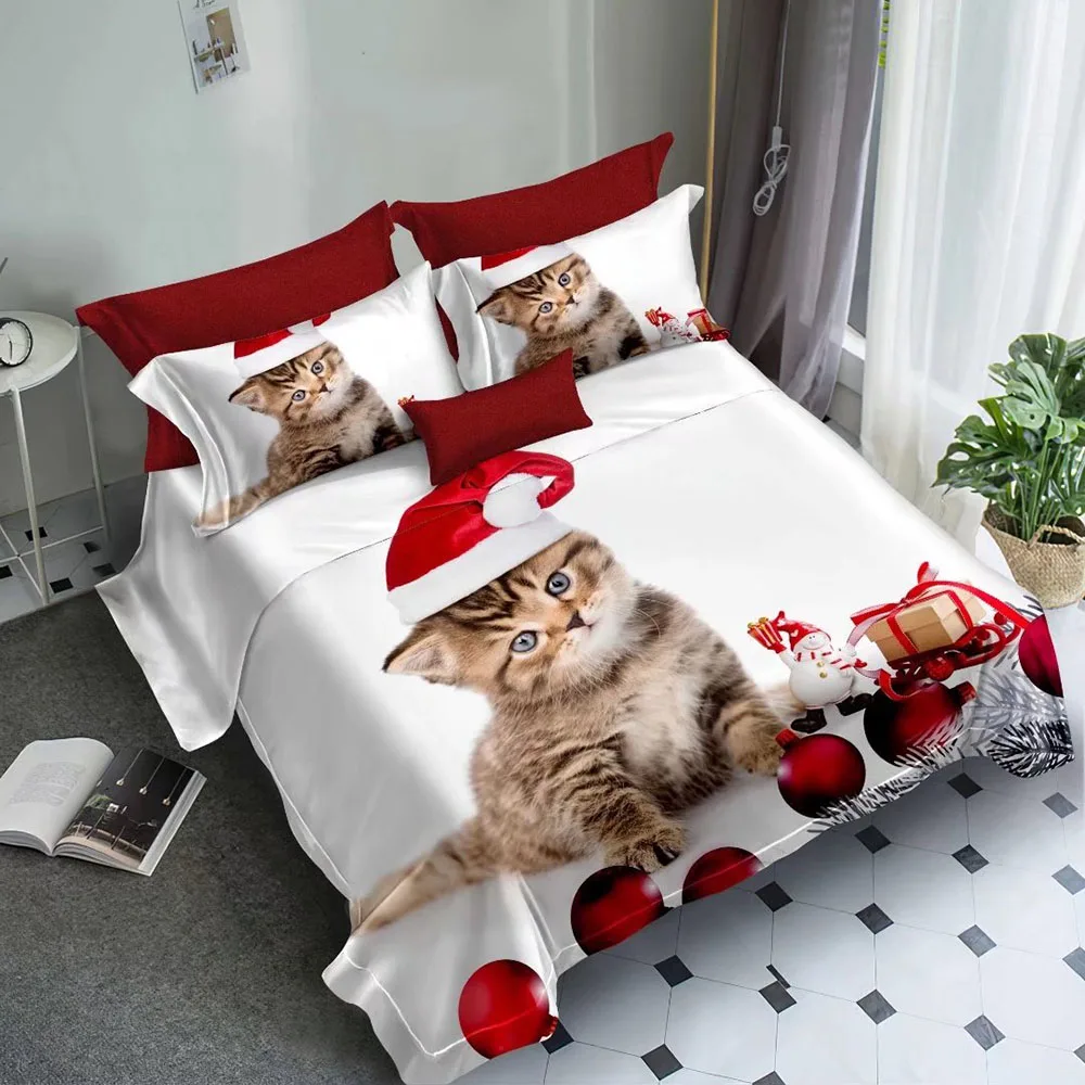 Digital Printed Bed Sheets Microfiber Bedsheet Cute Animal Dog Queen Size Christmas Bedding Cover 3D Set
