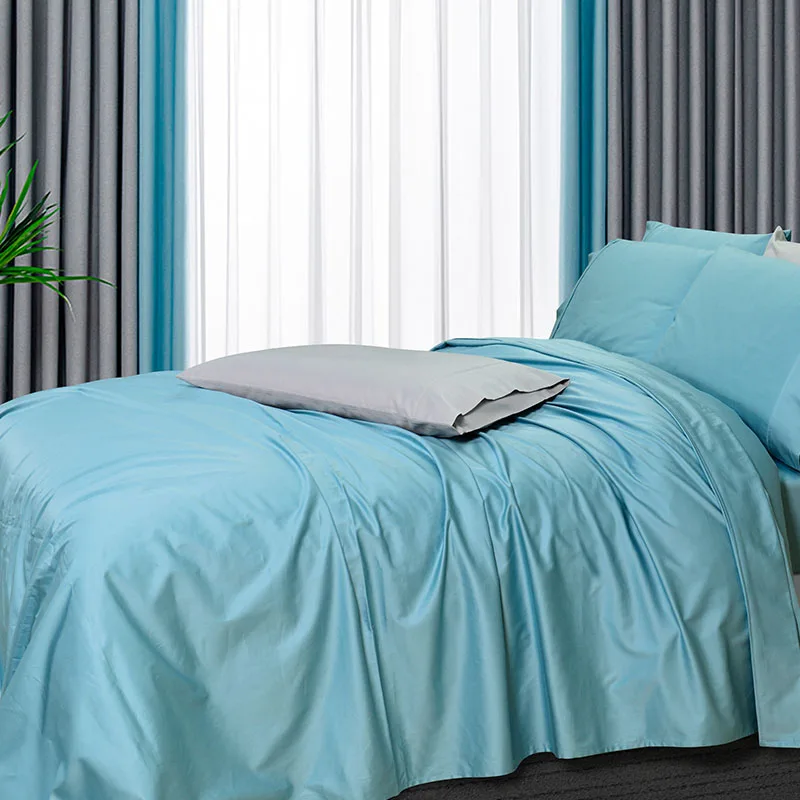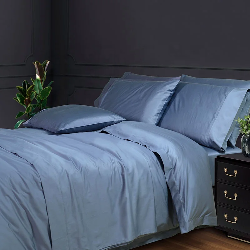 100% Bamboo Fiber Woven Modern Solid Color Bedding Set Super King Size Includes Flat Bed Sheet Fitted Duvet Cover