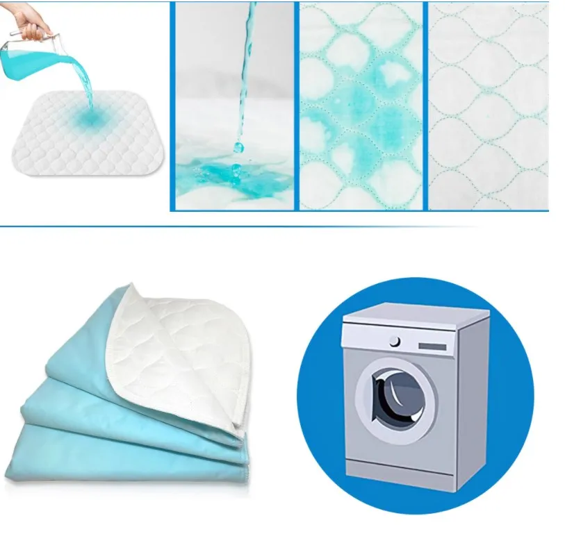 Quilted 4-Layer Soft Reusable Incontinence Bed Pads Washable Waterproof Underpad for Baby and Adult Plain Style Bed Mat